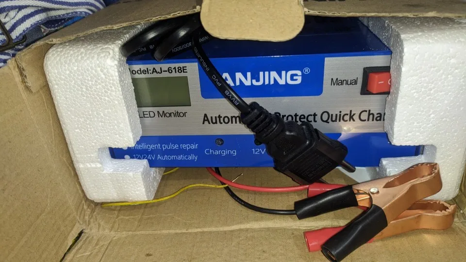 Muy buen cargador te indica el voltaje y el amperaje que este va cargando. Se ajusta solo a una batería o dos y es muy silencioso y ocupa el minimo de espacio. Recomendado