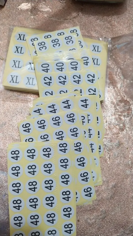 130 unids/lote, 0 1 2 3 4 5 6 7 8 9 10 12 14 16 18 --- 58 60 adhesivo color pegatina número Etiqueta de talla ropa térmica cajero papel