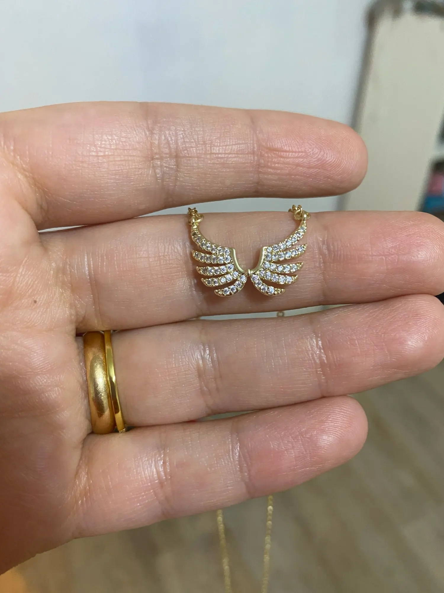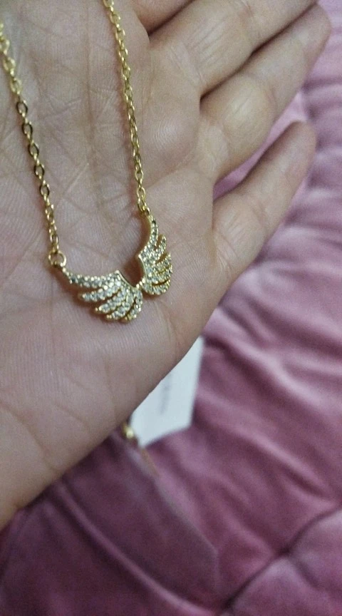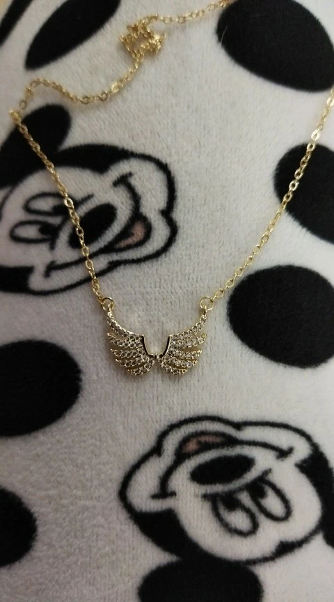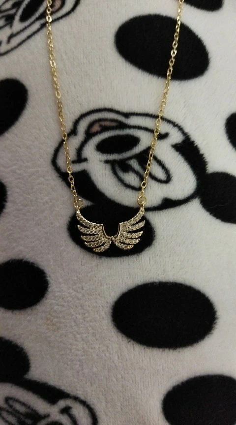 14k Real exquisito de oro simplicidad alas de Ángel collar encanto diseño corto clavícula Zircon mujeres Kolye pendientes regalo de cumpleaños