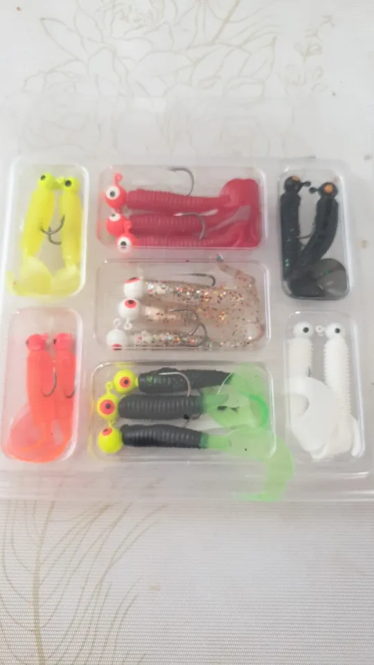 17 unids/set señuelo de pesca suave plomo Jig cabeza gancho Grub gusano pesca suave cebos Shads silicona cebo Artificial pesca aparejos pesca