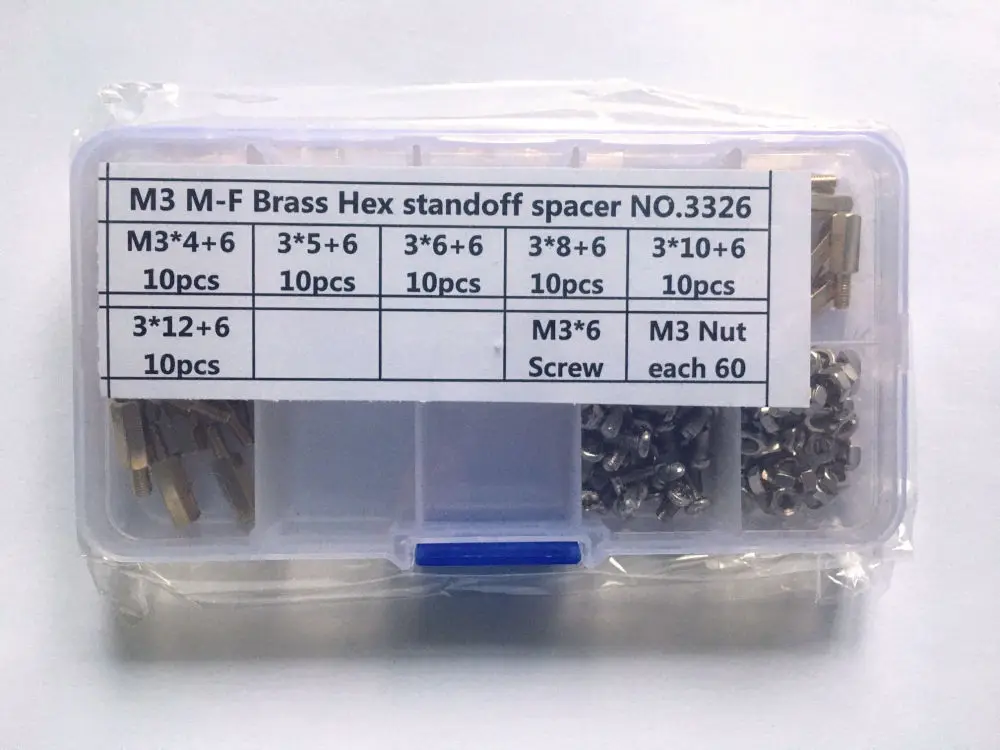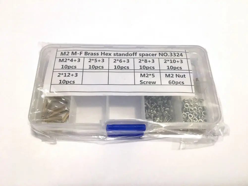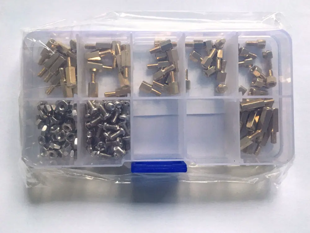 180 piezas M2 m2.5 M3 macho rosca hembra latón separadores de espaciador/tornillo/tuerca hexagonal surtido set Kits con caja de plástico