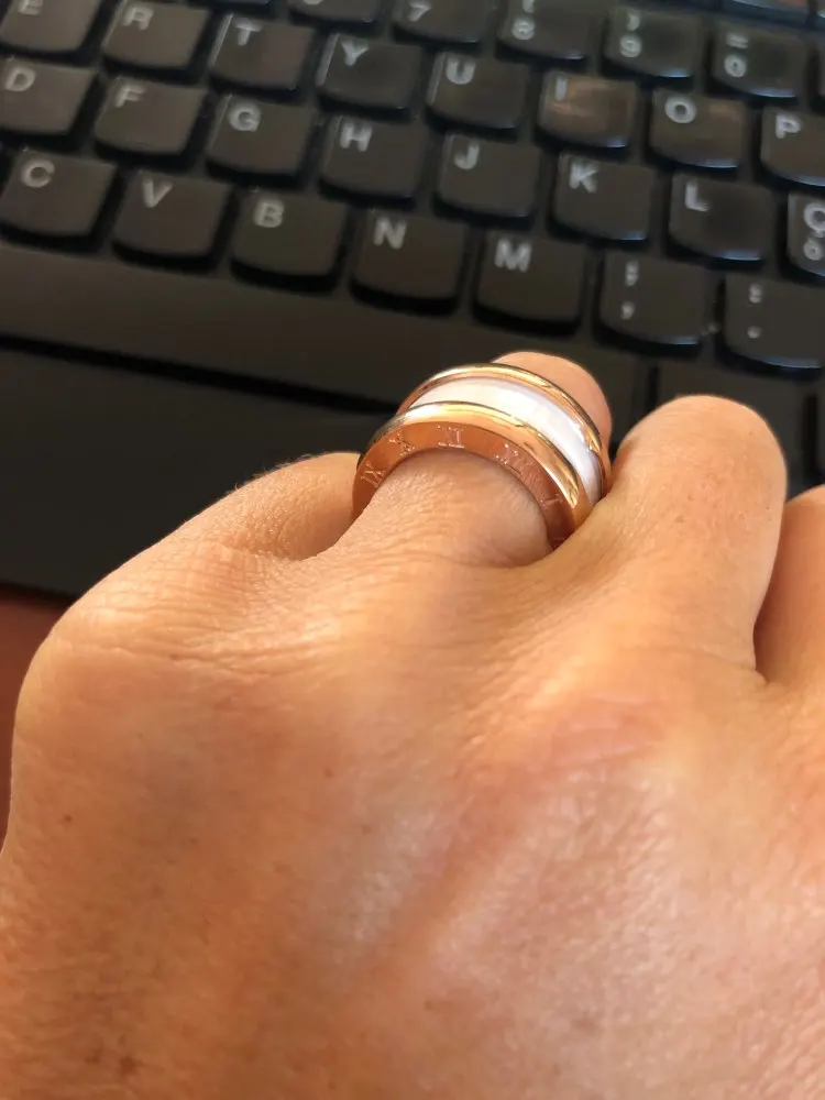 18KGP-Anillo de cerámica de Número Romano para hombre y mujer, joya de lujo de acero inoxidable, Color oro rosa, envío gratis (GR225)