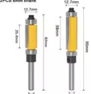 1Pc 6mm 1/4 "mango plantilla/brocas de rebaje y acabado con 2" largo de cortadores Características: Rodamientos de bolas de parte superior e inferior, herramienta para carpintería
