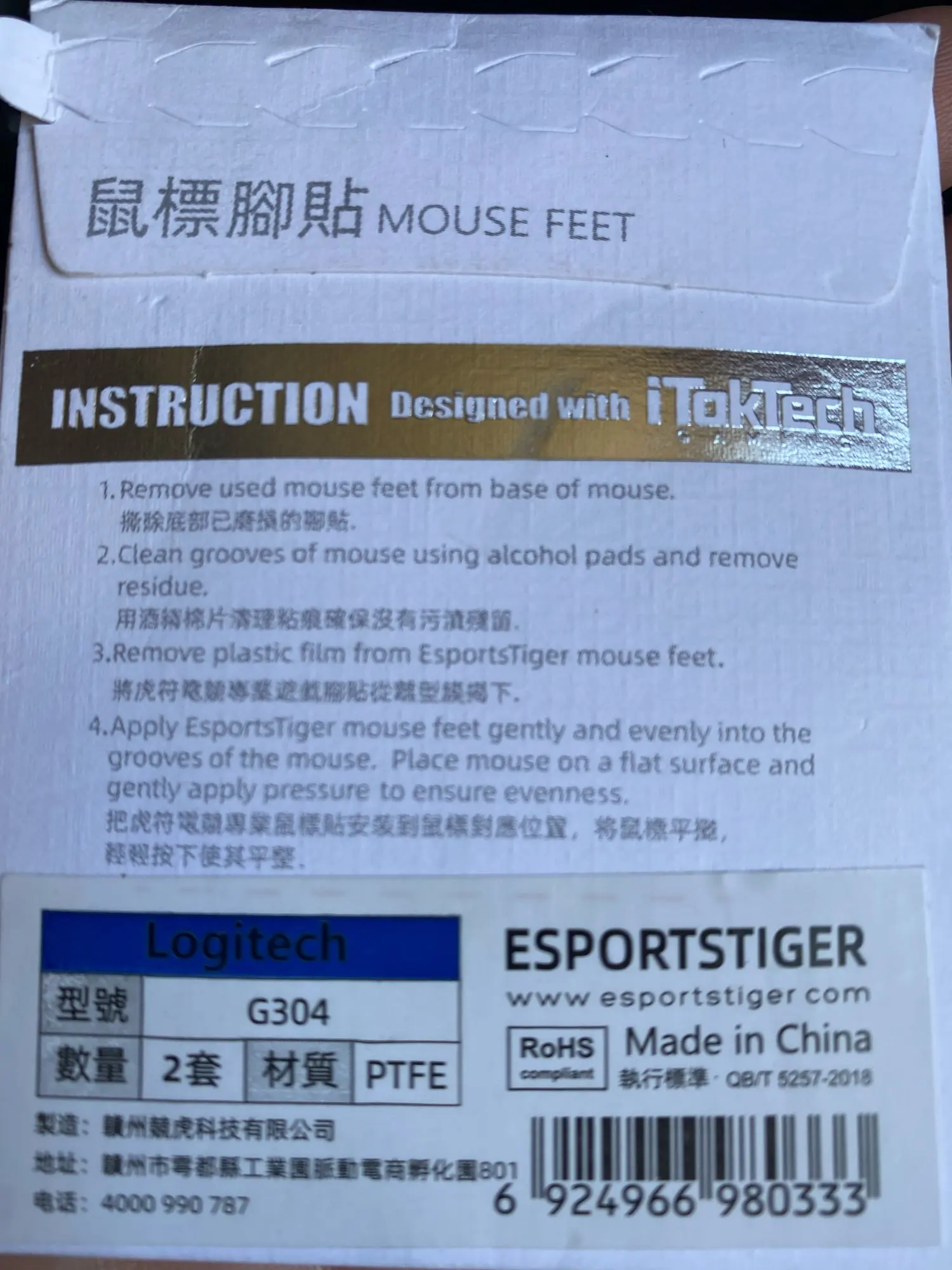 2 Sets/pack Tigre ratón de juego pies ratón Skate para Logitech G304 G305 ratón blanco ratón teflón se desliza borde de la curva