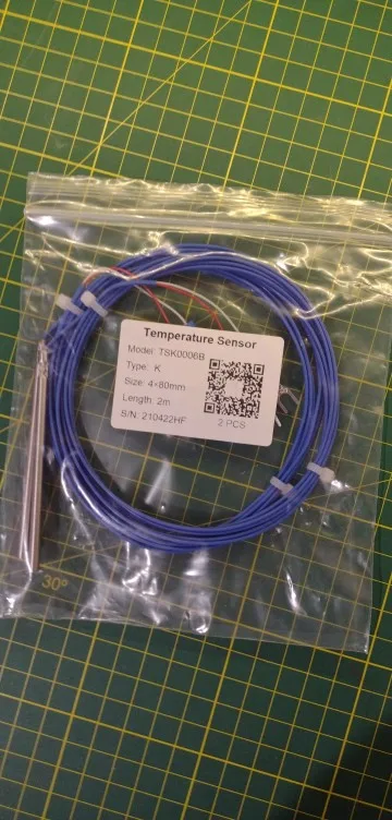 2 termopar tipo K de 40 ~ 480 grados, 3mm / 4mm * 80mm, Sensor de temperatura de sonda, 2 metros, cable aislado azul de alta calidad