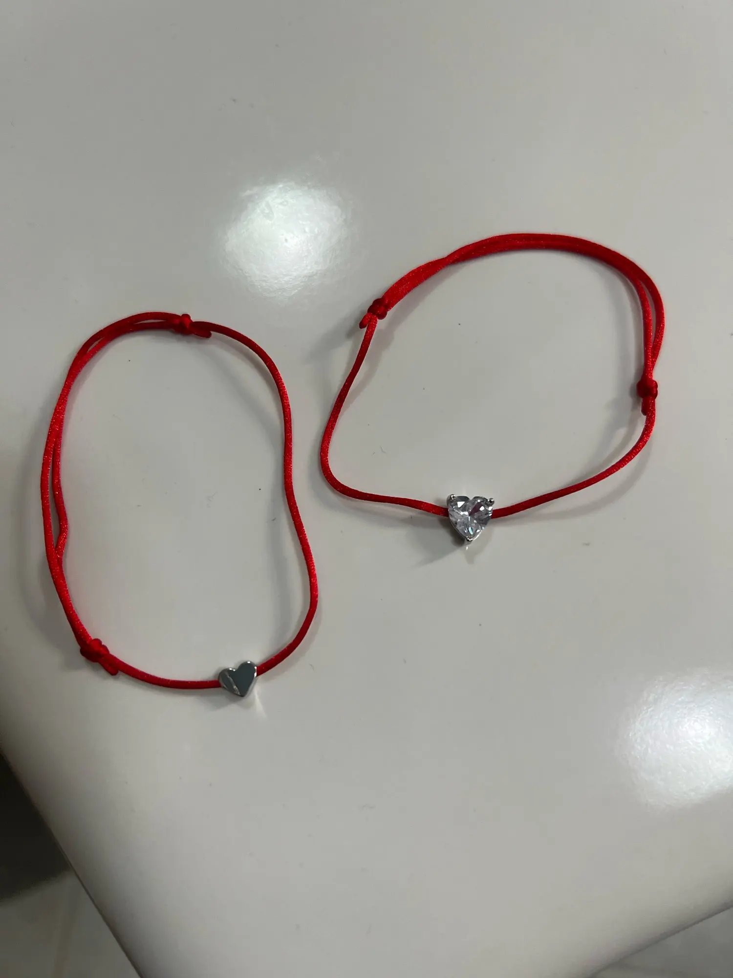 2 unids/set de Color plata de las mujeres de cristal de circón pulsera de corazón de amor hilo de cuerda roja trenza DIY pulseras para las niñas niño regalos para parejas