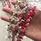 2 yardas Rosa rojo verde poliéster hojas bordado cinta para ajuste, cordón costura de bricolaje hecha a mano artesanal para traje sombrero Decoración