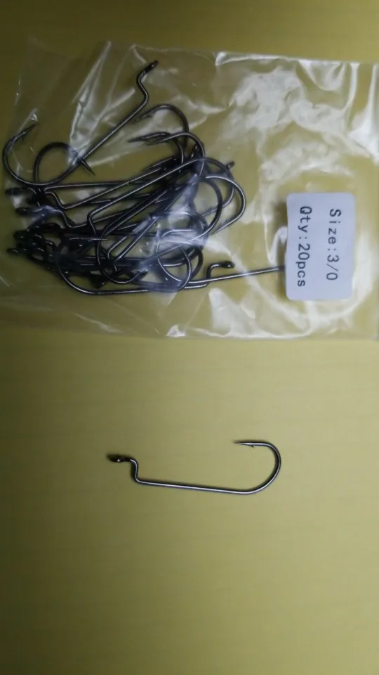 20 piezas de gusano de manivela estrecha de acero al carbono, gancho de carnada blanda con anzuelo para el aparejo de NC Pesca de lubina 1 #2 #4 #6 #1/0 #2/0 #3/0 #4/0 #5/0 #