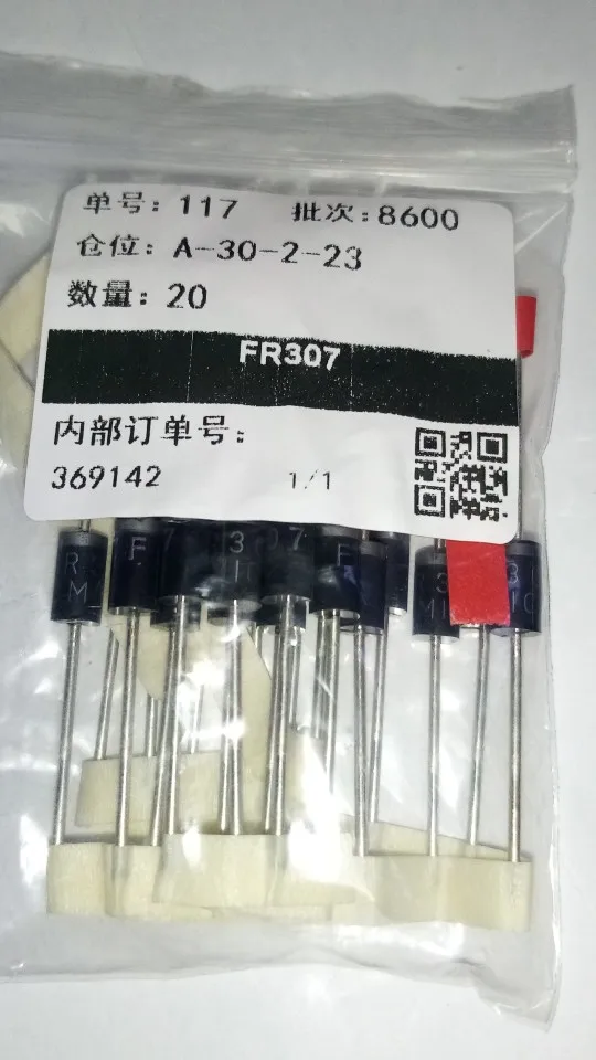 20 piezas diodo rectificador de HER108 HER208 HER307 HER308 HER508 SF16 SF56 SF54 FR307 FR607 hacer-27