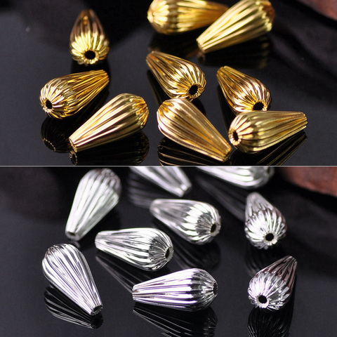 20 Uds chapado en oro Color 14x7mm lágrima hueco complicado latón Metal perlas mucho para fabricación de joyería DIY manualidades venta al por mayor