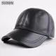 2017 de Cuero de Moda Gorra de Béisbol de Los Hombres Espesar Otoño Invierno Sombreros con oídos 6 Panel Mantener Caliente de Cuero Tapa Varón Sombreros Hueso casquette