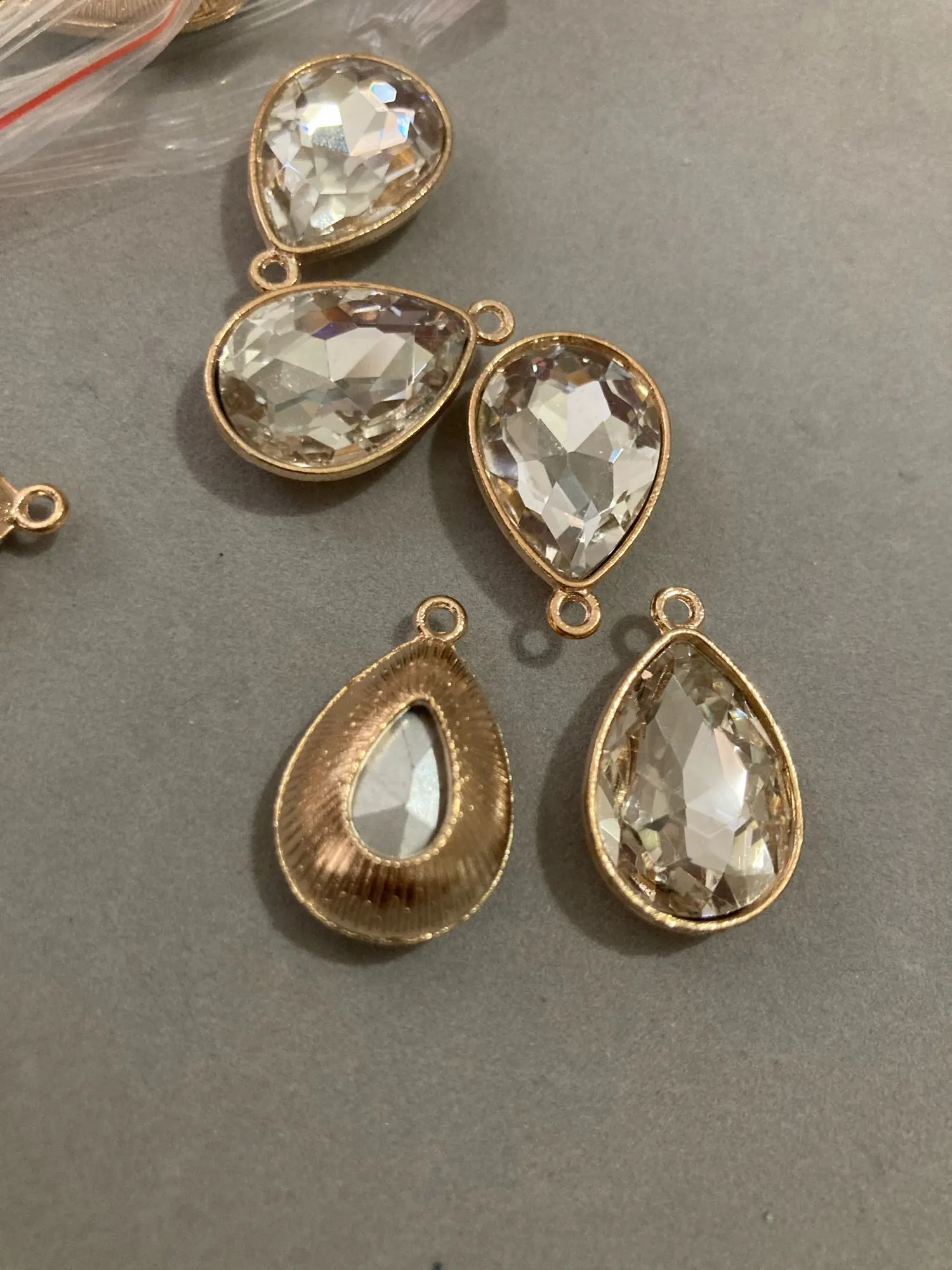 2017 de oro de aleación de cristal colorido de dijes de gotas de agua 12 unids/lote 23*15MM DIY, collar, pendientes, pulsera, accesorios