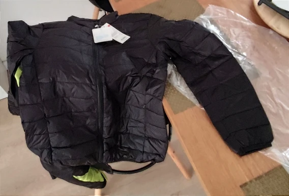 Estupenda chaqueta acolchada no muy gruesa pero que abriga tanto como una mucho más gruesa, súper cómoda de llevar y talla perfecta con su tabla de medidas