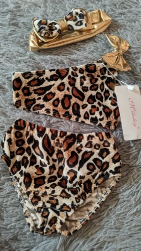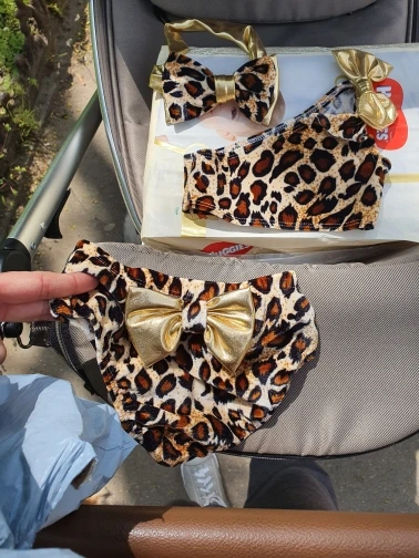 2022 3 uds niños bebé niñas leopardo-hombro Set de biquini de arco traje de baño de traje de la ropa