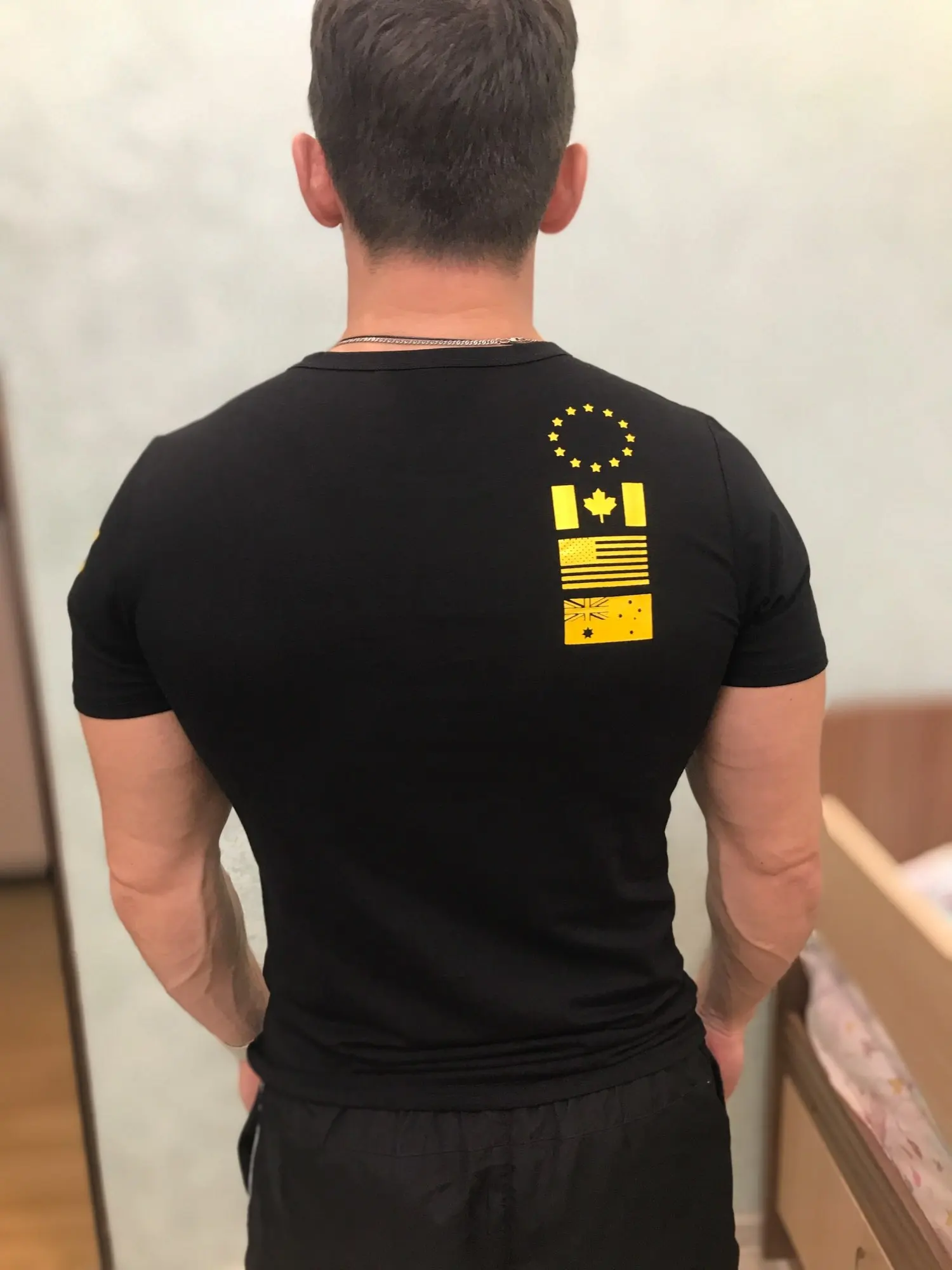 Muy buen vendedor,muy rapido.La camiseta tiene un tacto y una calidad muy buena para el precio que tiene,los grabados son muy bonitos,altamente recomendable.Es ajustada pero da de si,pedi una talla XL y me ajusta bien,ideal para marcar pecho y brazos (en general marcar todo).El envio muy rapido,solo tardo apenas 15 dias,increible!!recomiendo el vendedor.