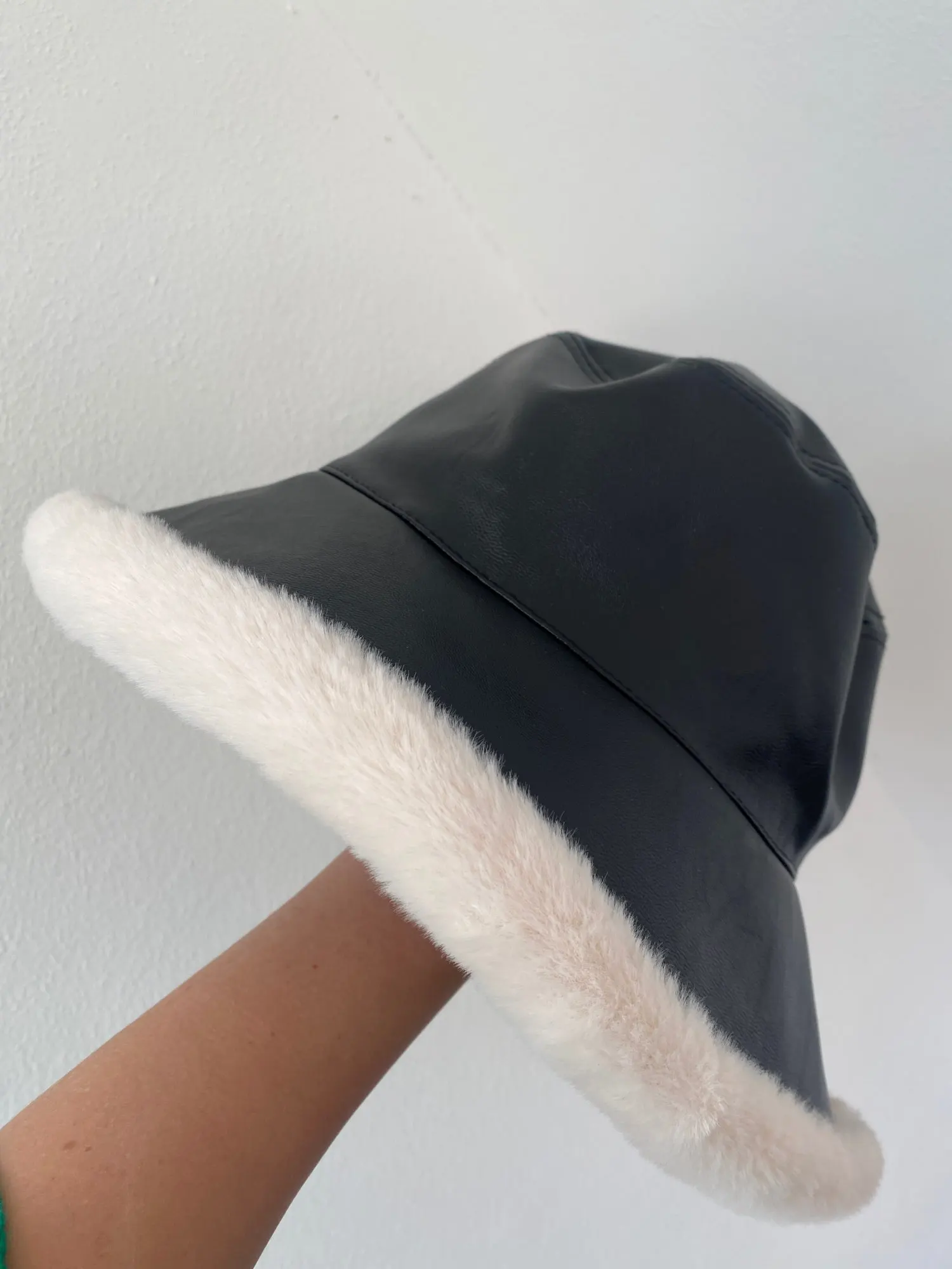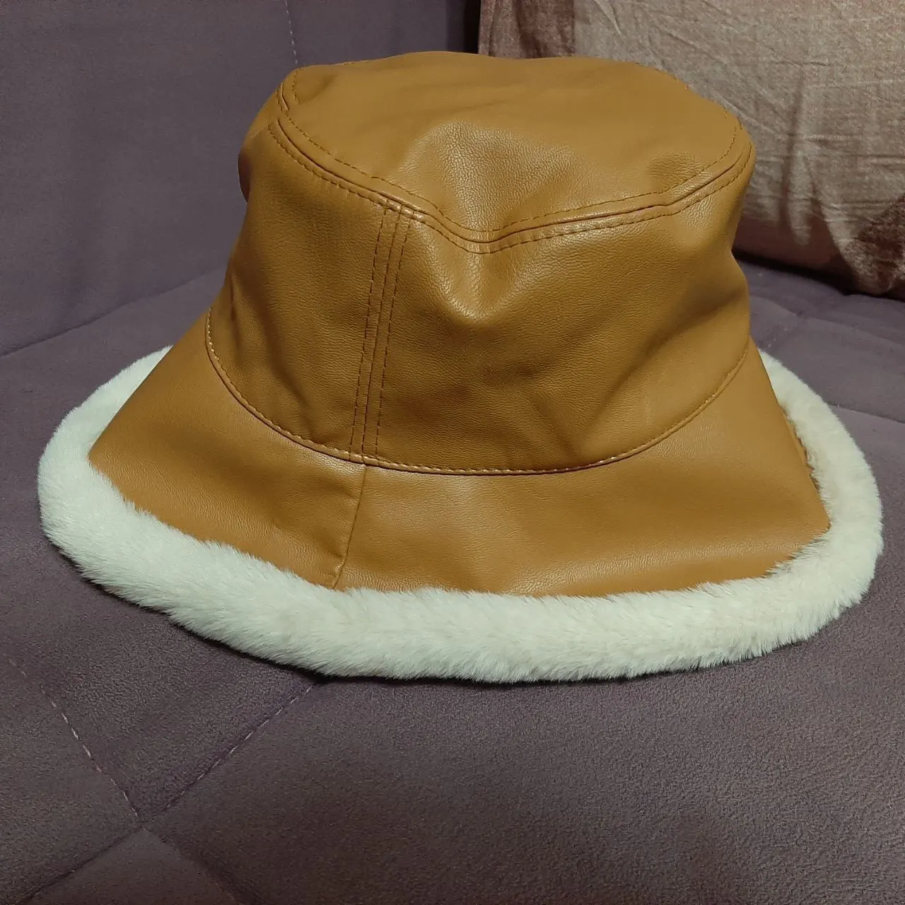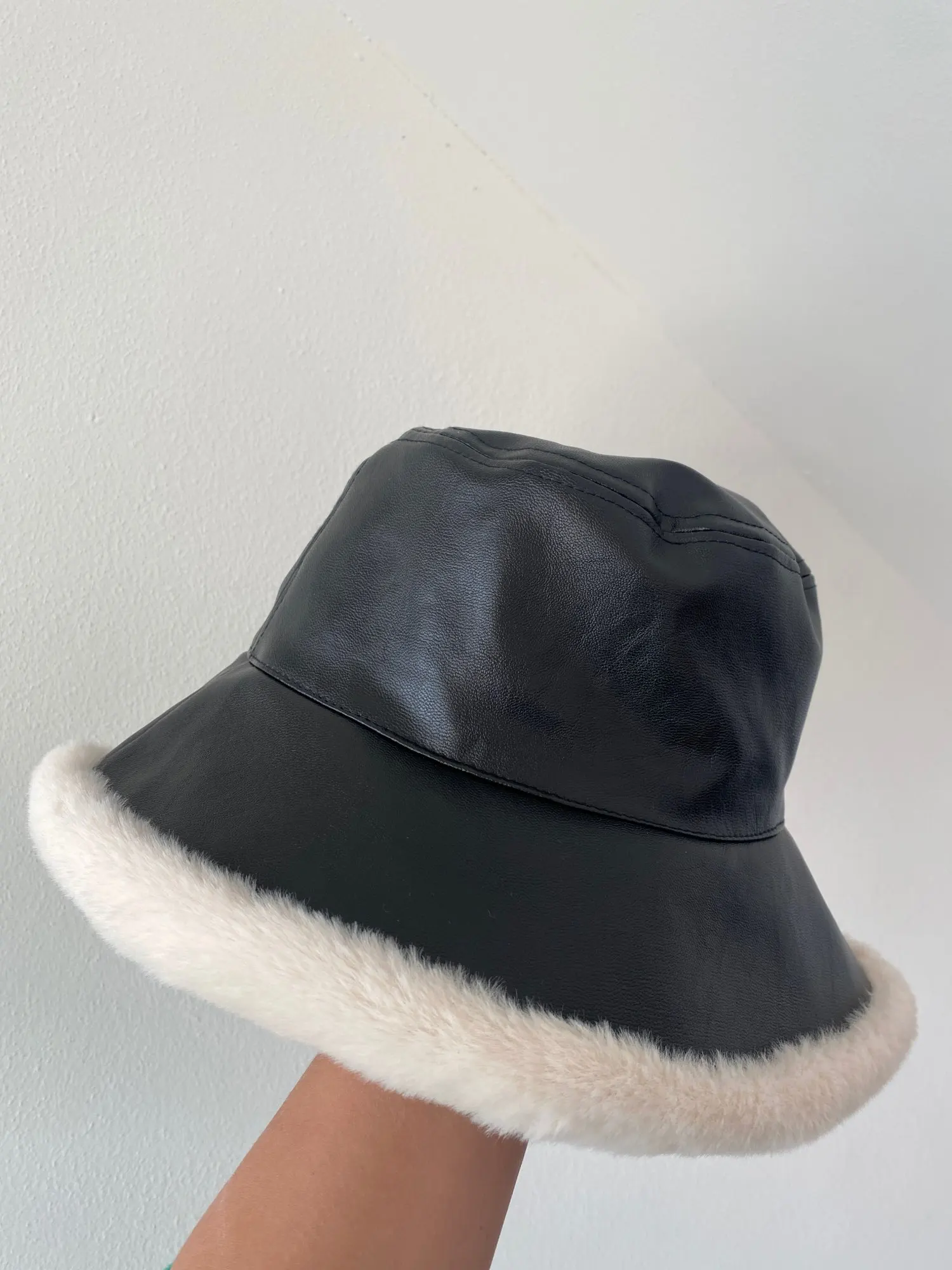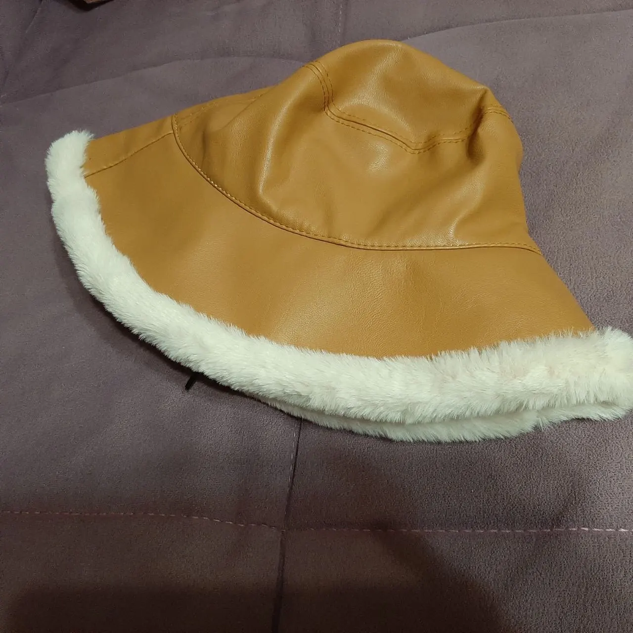 2022 Otoño Invierno sombreros de cubo de cuero de la PU DE LAS Panamá sombrero grueso caliente de la felpa pescador tapa para chica prensa gorro de lavabo kapelusz