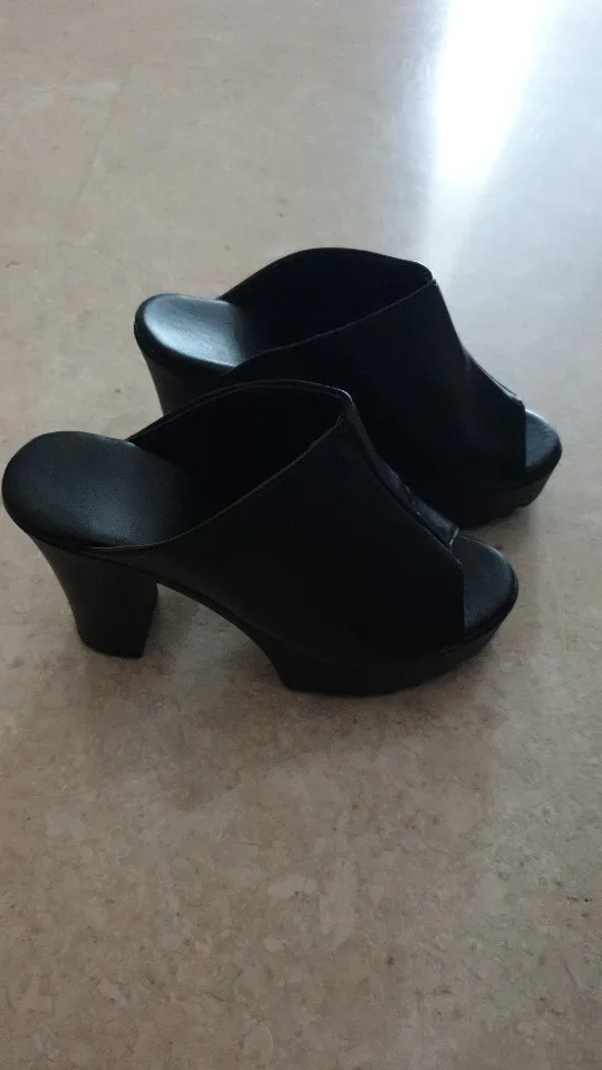 2022 las mujeres de tacón alto sandalias zuecos negro plataforma Peep Toe mulas de cuero de las señoras suela zapatillas hembra sandalias de zapatos