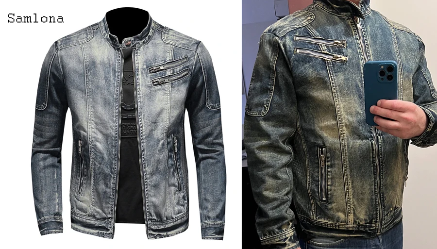 2022 nueva primavera otoño Chaquetas vaqueras de hombre moda encaja motocicleta Jean Denim chaqueta Patchwork con varias cremalleras Sexy para Hombre Ropa