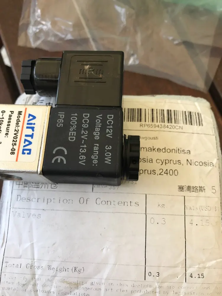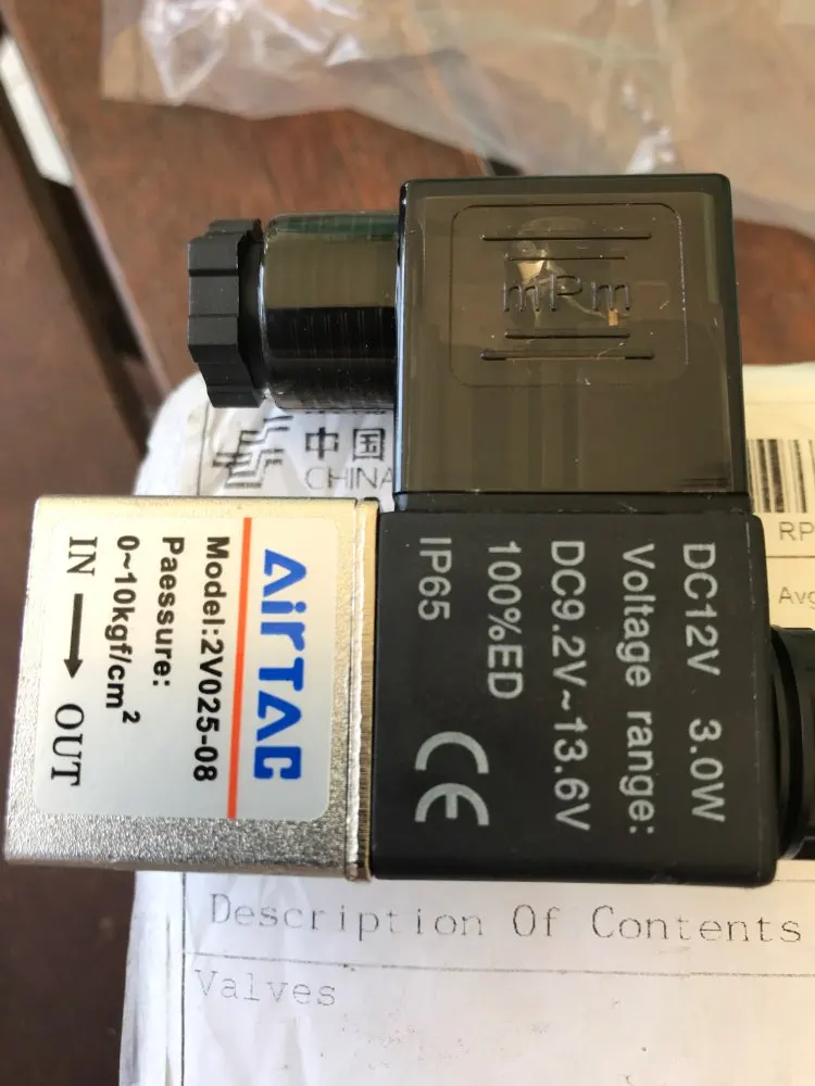 2V025-08 12 V/24 V DC, 220 V/110 V AC 2 puerto 2Pos 1/4 "BSP normalmente cerrado válvula solenoide bobina Led