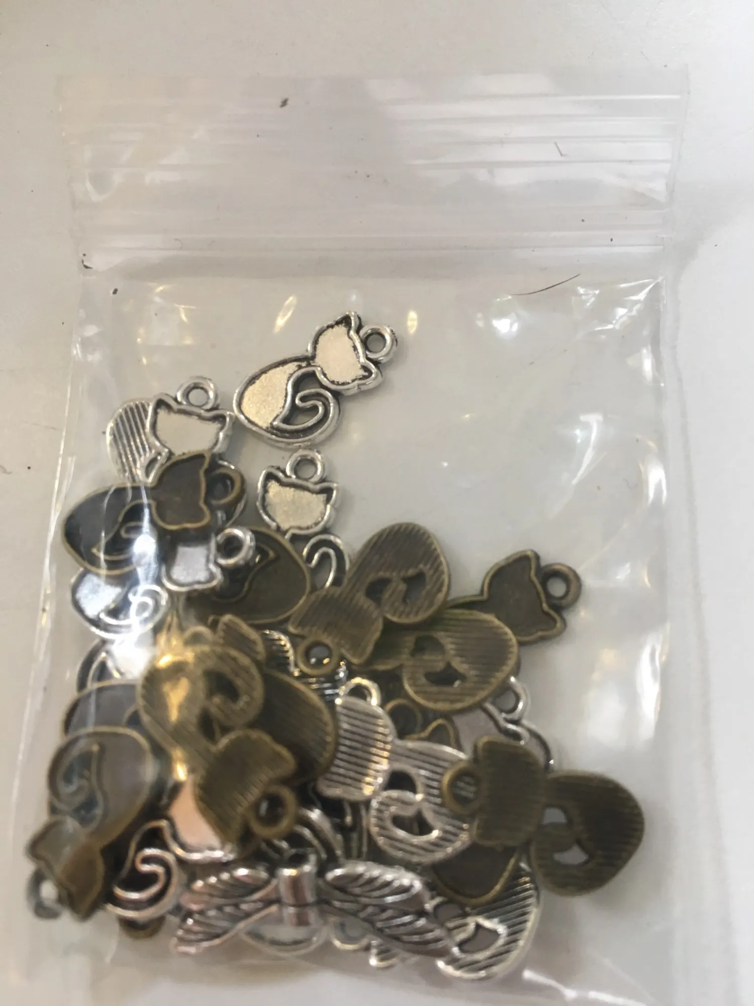 30 Uds. De abalorios de aleación de Metal de 9x15mm, colgante de animales de dos colores para gato pequeño para fabricación de joyería artesanal