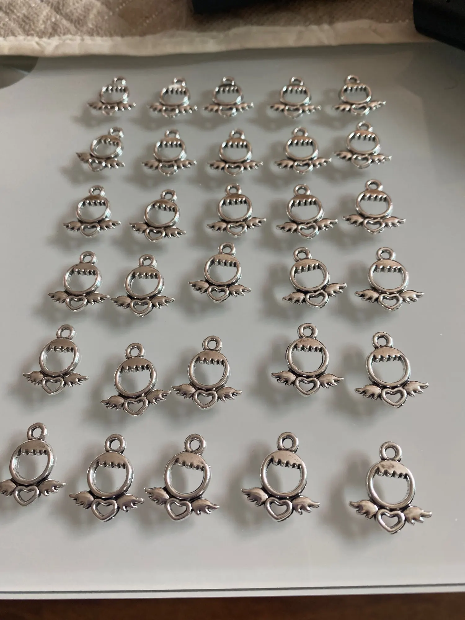 30 Uds. De amuletos de ángeles con alas de Color plateado, colgante de ángel puro, pulsera, collares, suministros de joyería, A3358