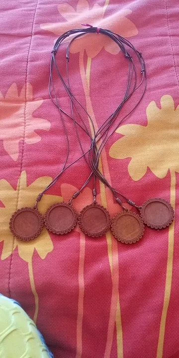 30mm Cabochons marrón collar de madera Base de madera en blanco colgante, bandejas colgantes de la joyería de Diy accesorios para collar 5 hilos
