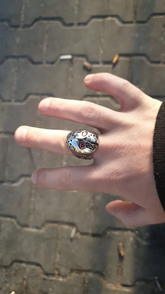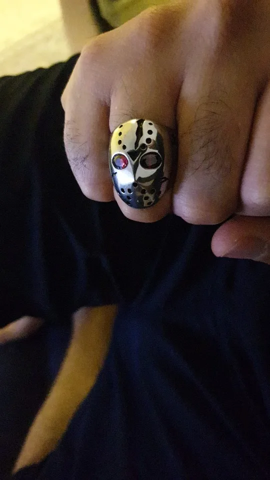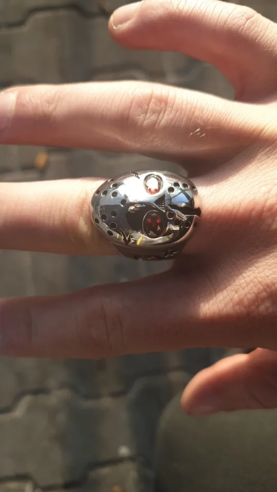 316L de acero inoxidable de Halloween Jason Hockey Circonia cúbica roja ojos anillo 3F301A