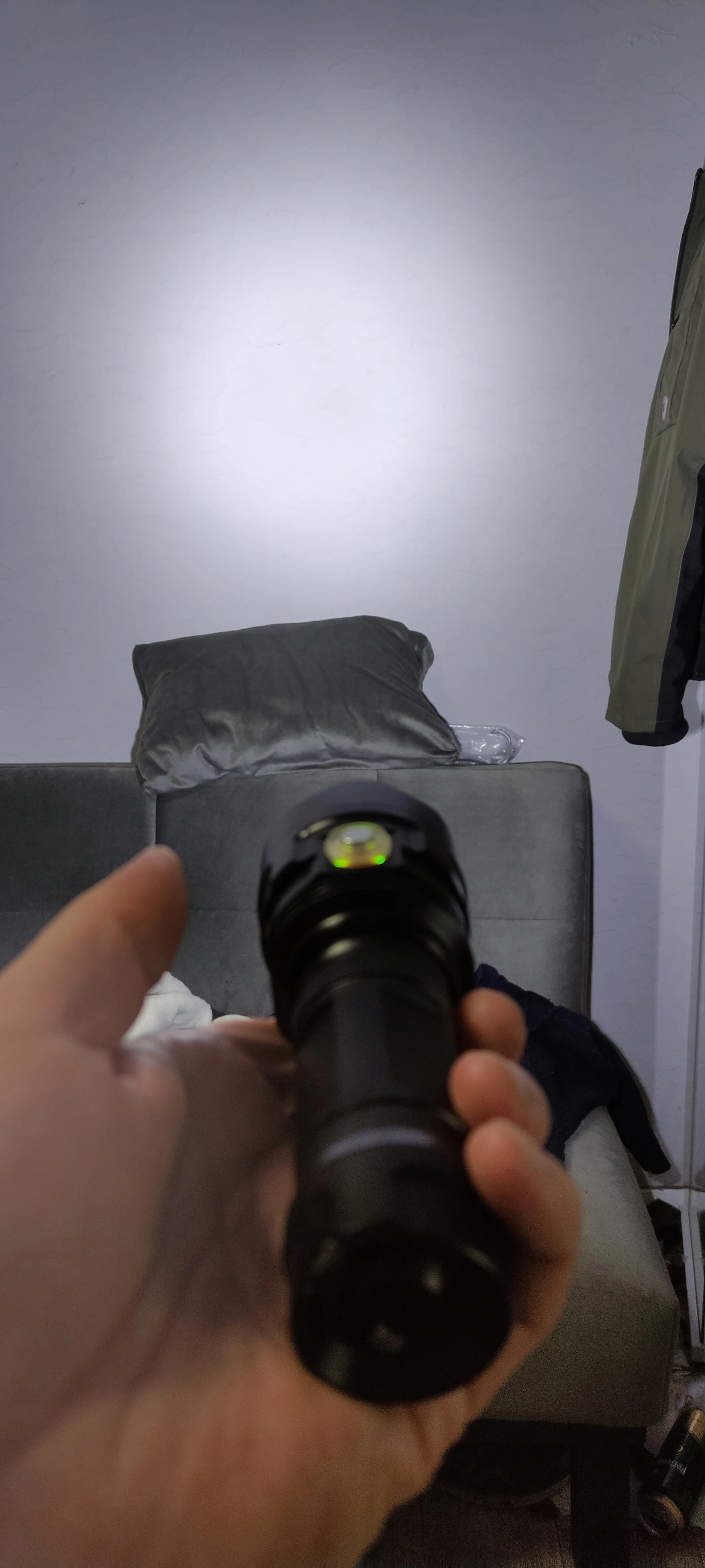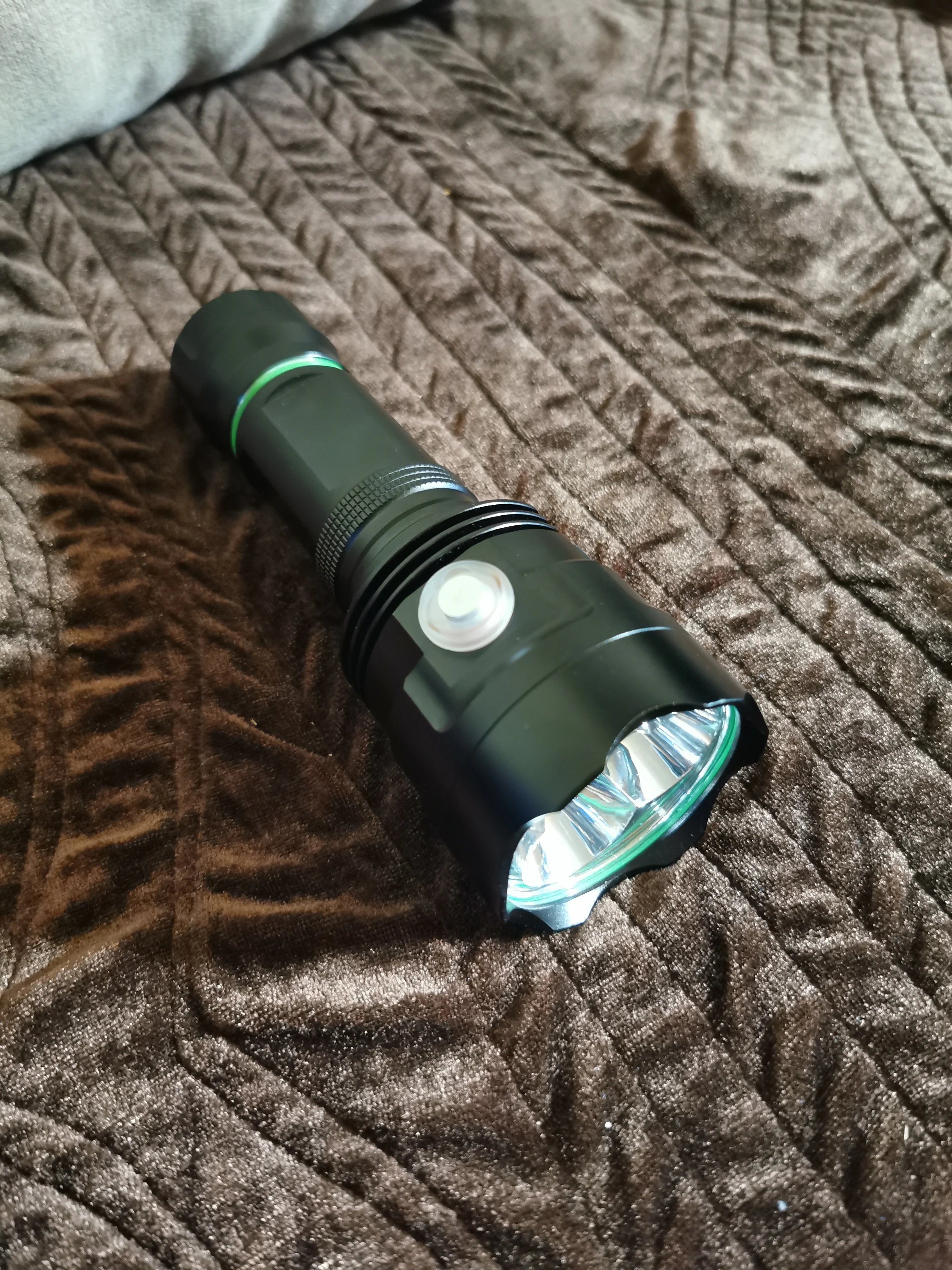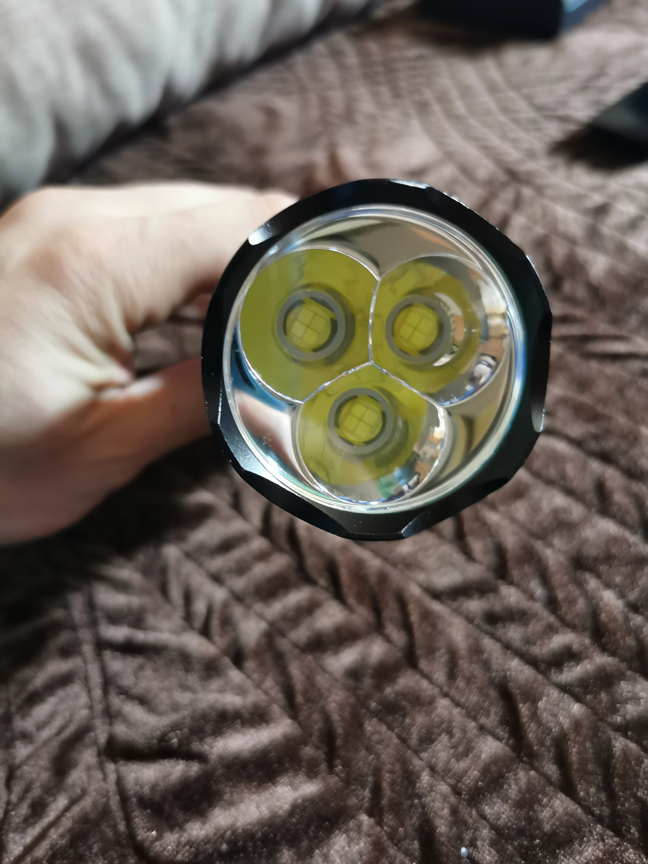Buena linterna pero esperaba muchísimo más al tener esos 3 led,tengo una con un led xhp70 que alumbra el doble por el mismo precio,comprobé está y está limitada clara mente me da unos 2ah de consumo la otra zoom con led xhp 70 solo con un led consume más de 3ah, haré más pruebas.