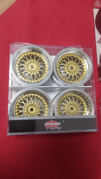 4 Uds 1/10 Touring y deriva de la rueda de Nylon borde Y12CG(Chrome + pintura Oro) 3/6/9mm offset para las 1:10 gira y coche 1/10 llanta 10043