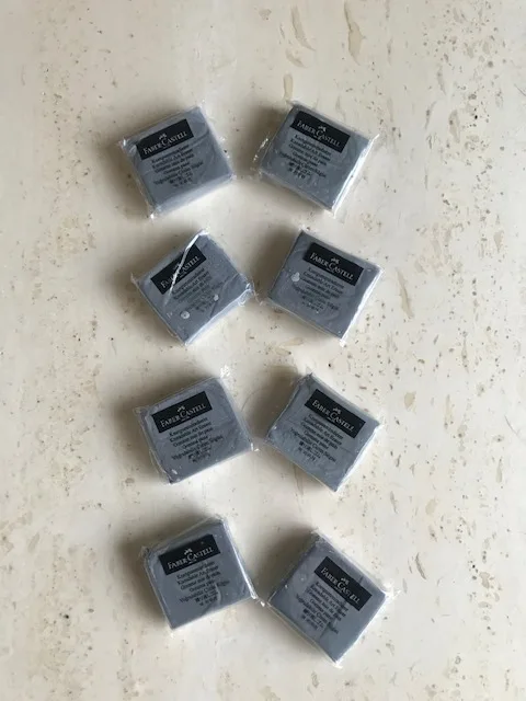 4 Uds. De arcilla de modelado suave Faber Castell 127120BKneadable para lápices de carbón, Color azul/gris/rojo/amarillo