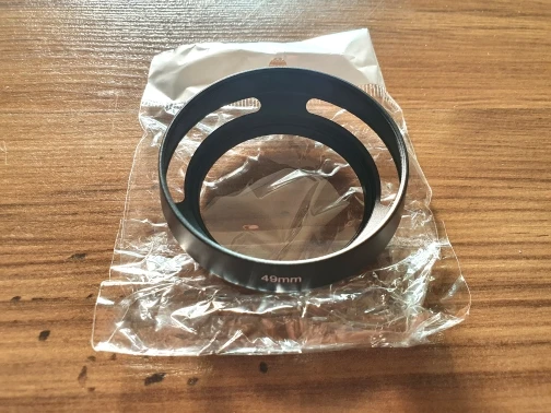 Buen aspecto. Metálico. La rosca es fina y perfecta. Proporciona un contraste medio entre no usar parasol (poco contraste) o usar uno cilíndrico (alto contraste). Pesa poco y le da un plus a mi lente de 50 mm.