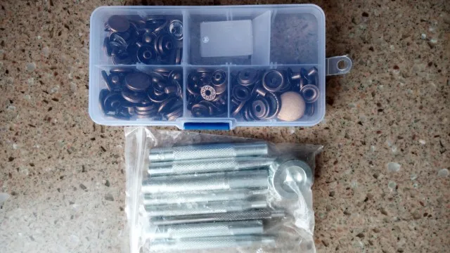 40sets botón a presión de metal + conjuntos de herramienta artesanía de cuero costura accesorios de hardware 3 color 633, 655, 831, 201