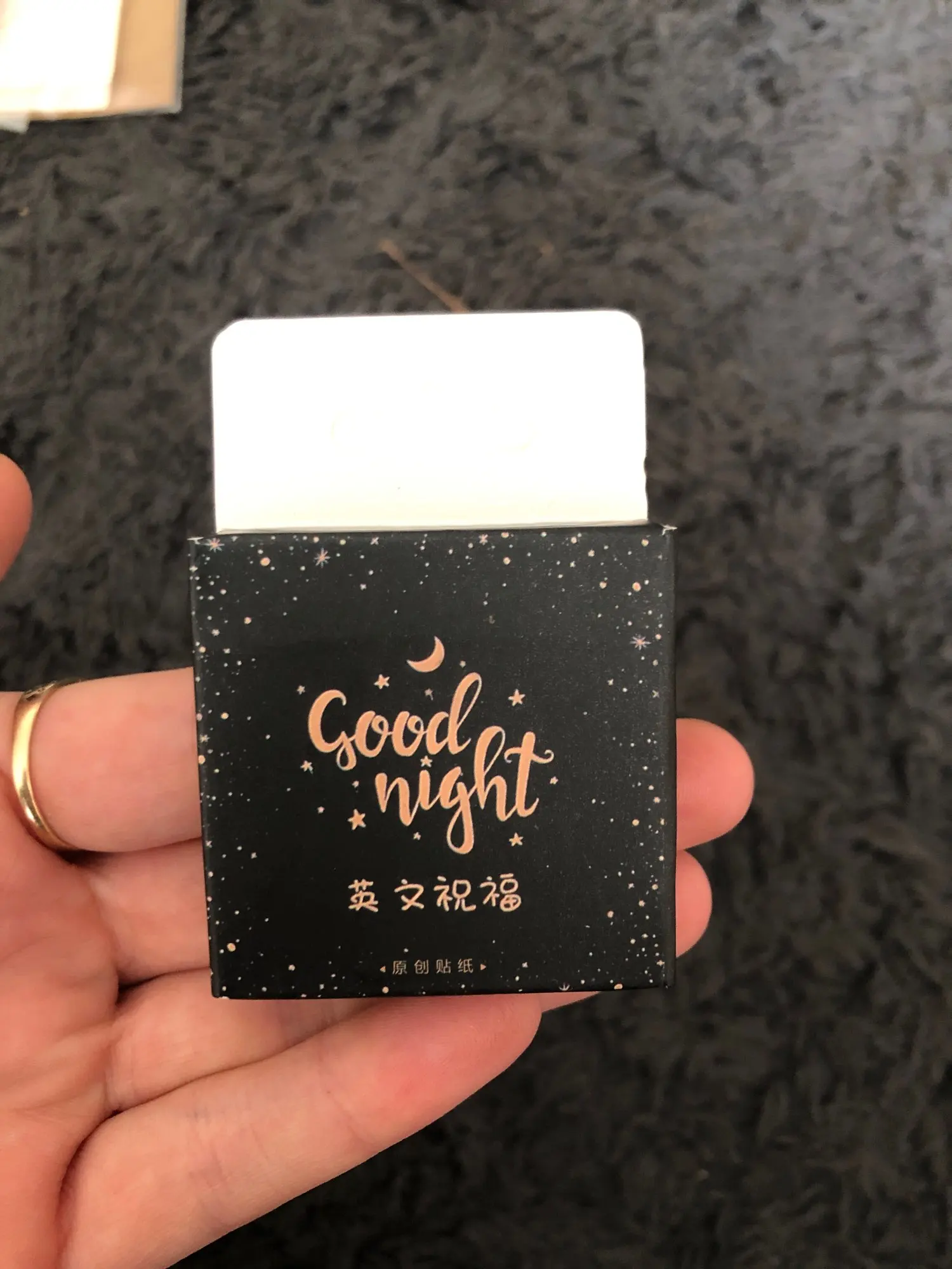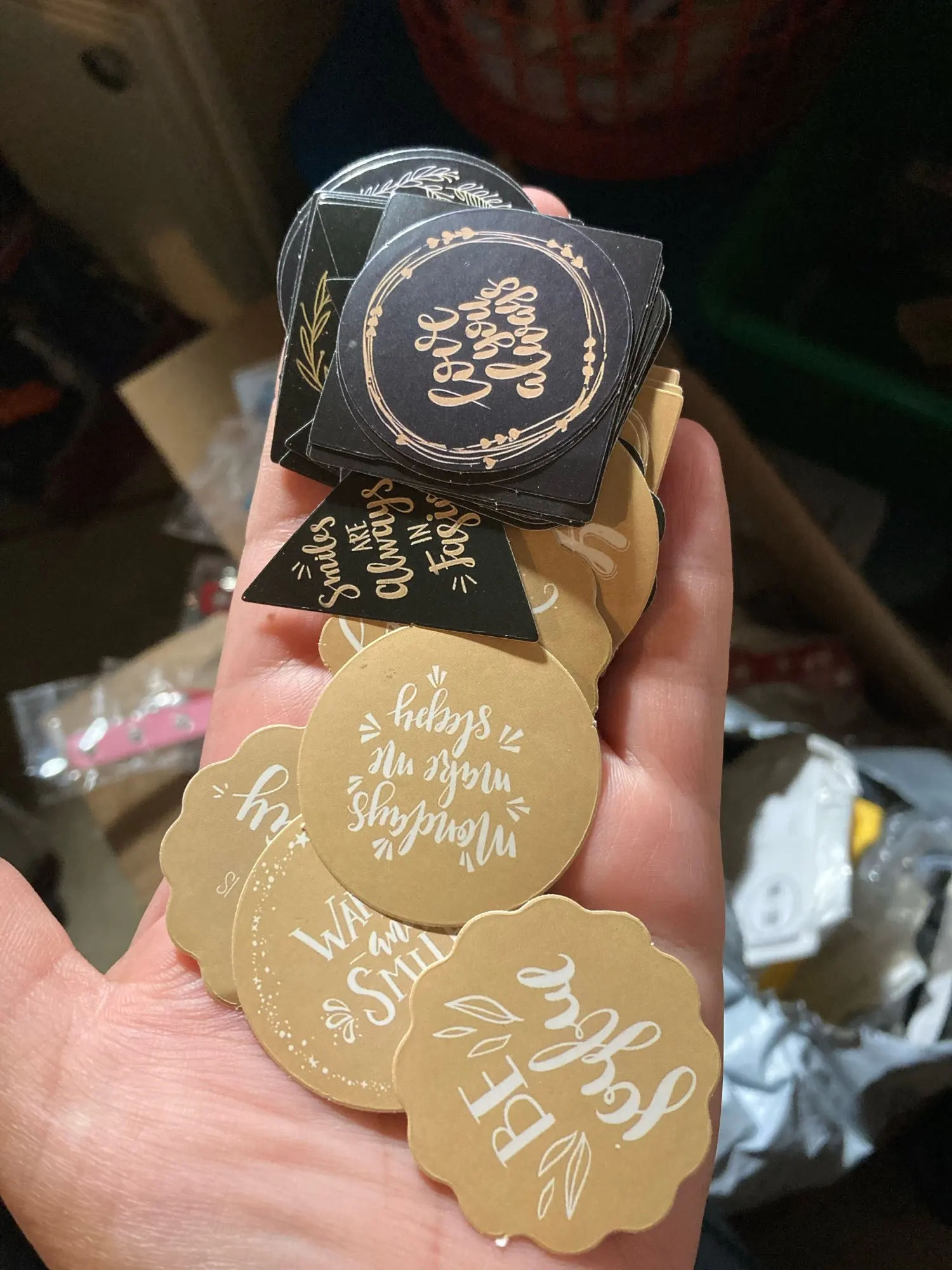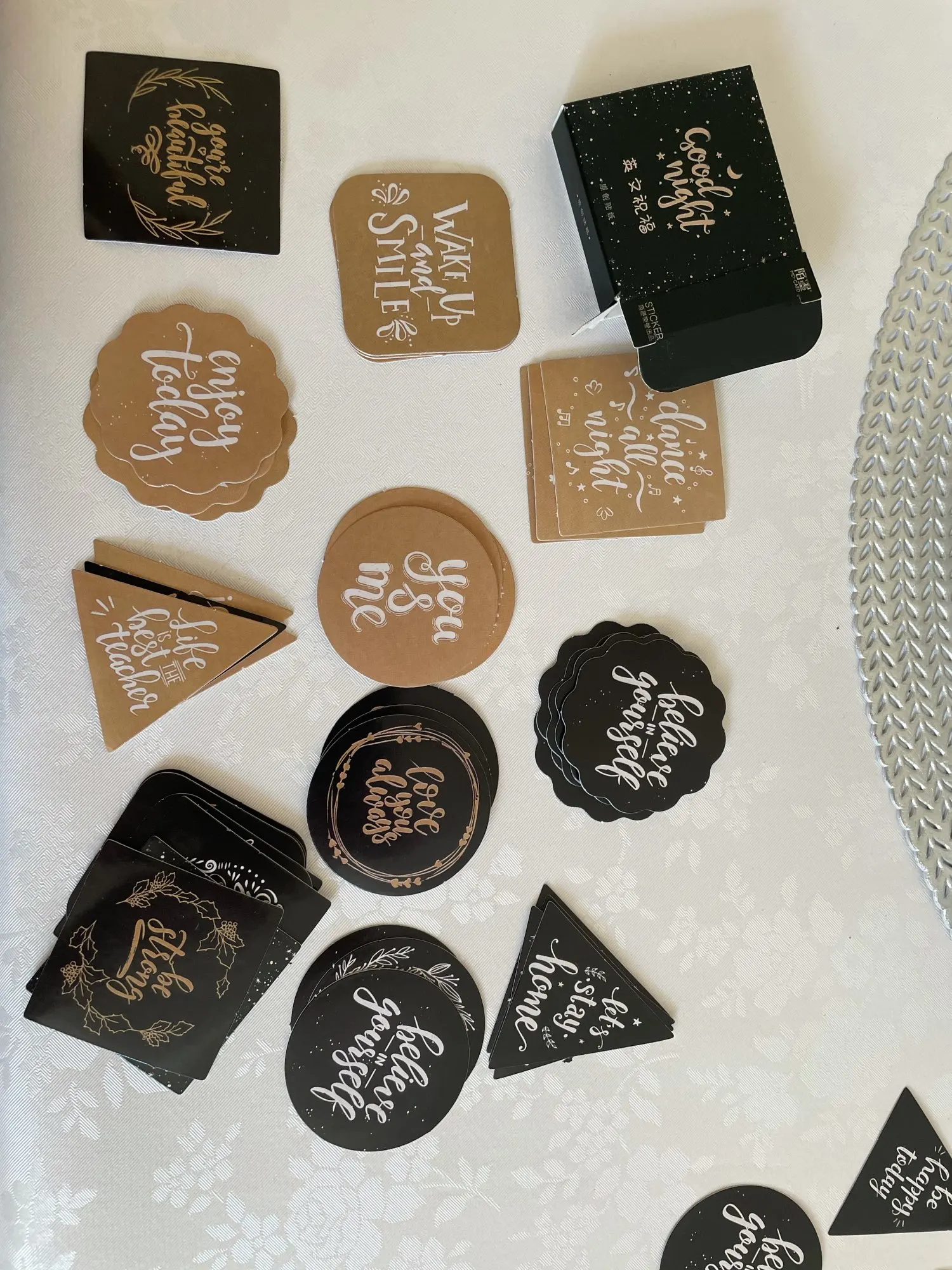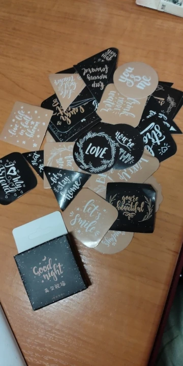 No está en una cinta que facilita el despegue si no que cada pegatina está por separado y se guardan en una cajita pequeña