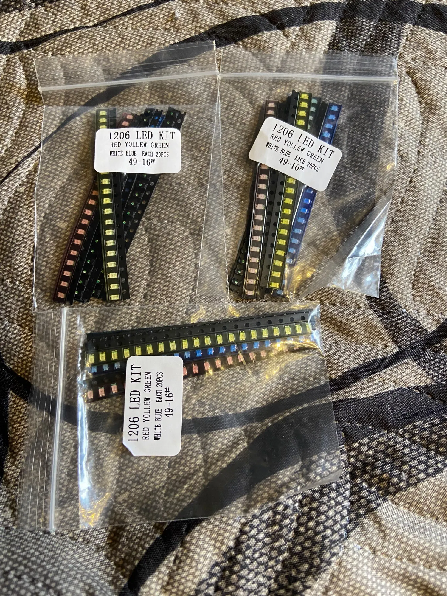 5 colores x20 Uds = 100 Uds 1206 SMD Paquete de luz LED rojo blanco verde azul amarillo 1206 kit de led envío gratis