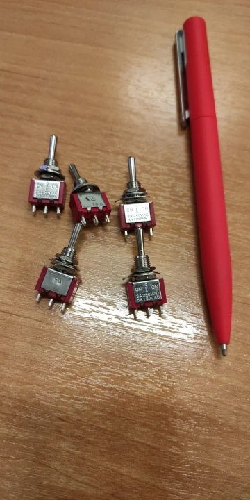 No es exactamente un interruptor, más bien un pulsador de palanca, ya que vuelve siempre a la posición inicial.