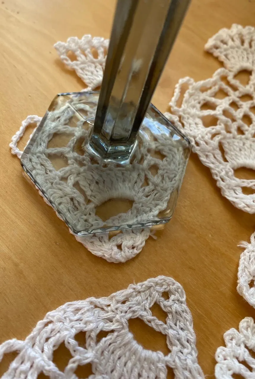 5 uds. Mesa moderna hecha a mano de ganchillo con forma de pez, tapete de algodón con encaje para taza de té, almohadilla para taza, posavasos de vidrio, juego de tapete de cocina