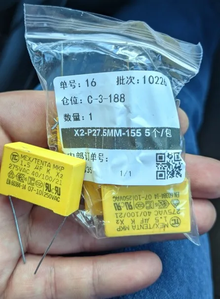 5 uds X2 seguridad condensador 27,5mm 275VAC 275V 1uF 1,2 uF 1,5 uF 2uF 2,2 uF 3,3 uF condensador de película de polipropileno