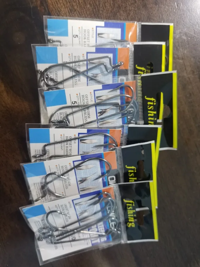 5 unids/lote 5/0-#6 gancho de pesca de acero al carbono de cigüeñal ganchos de pesca suave gusano LureBass púas carpa propietario