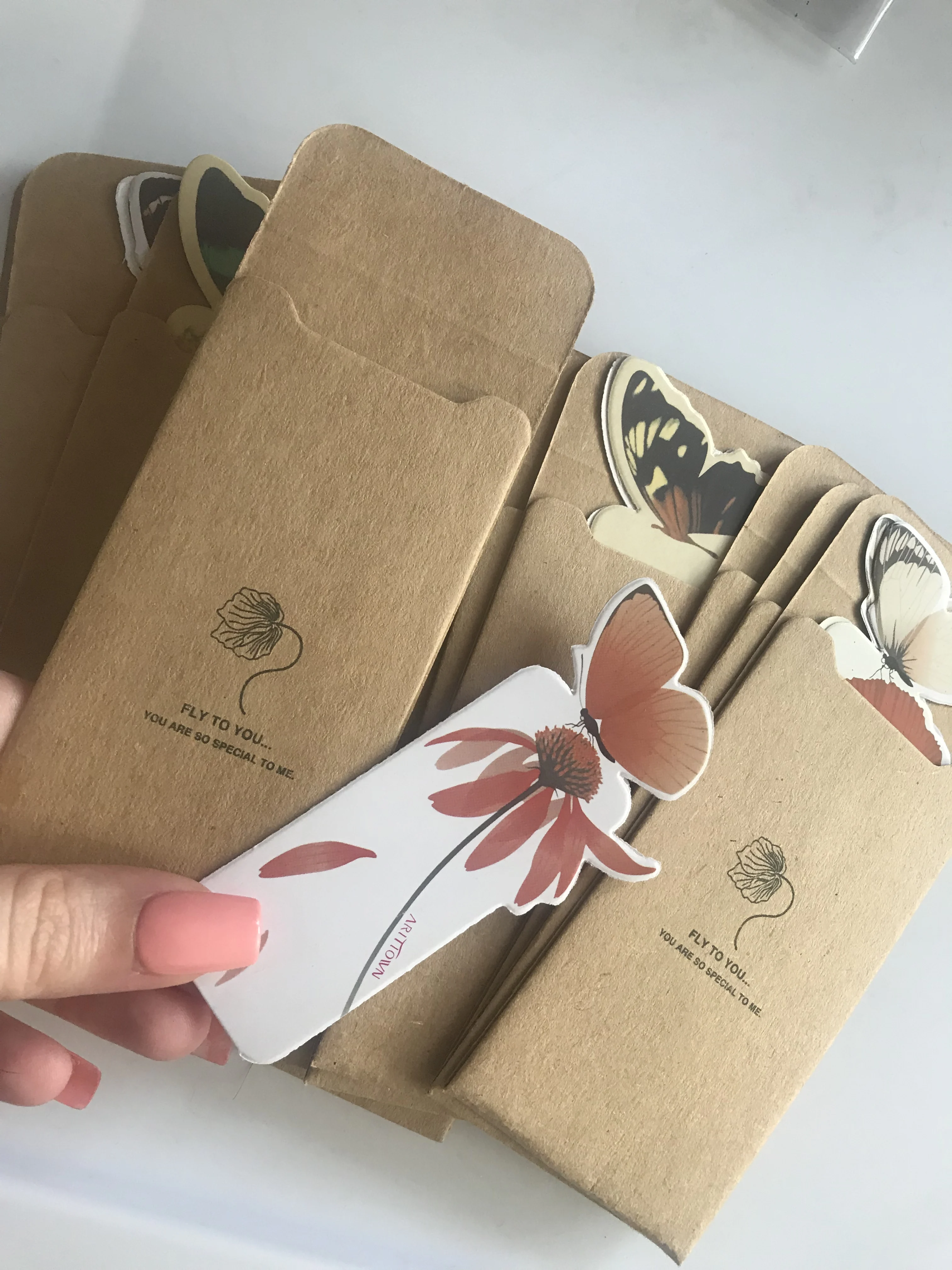 El pedido llegó en 20 días. Correctamente envuelto, no viene dañado. La calidad de impresión y de los materiales es muy buena. Recibidos 5 marcapáginas con diferentes diseños. Corresponde a la imagen. Gracias!