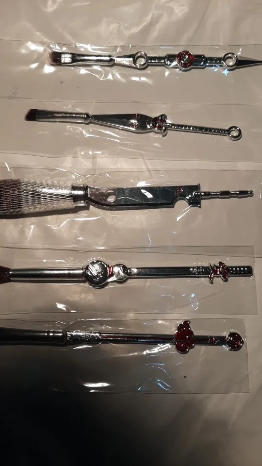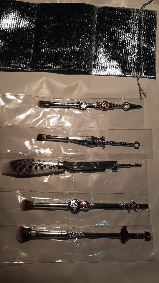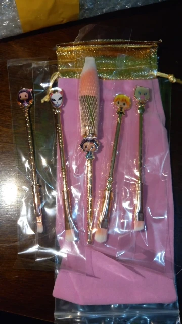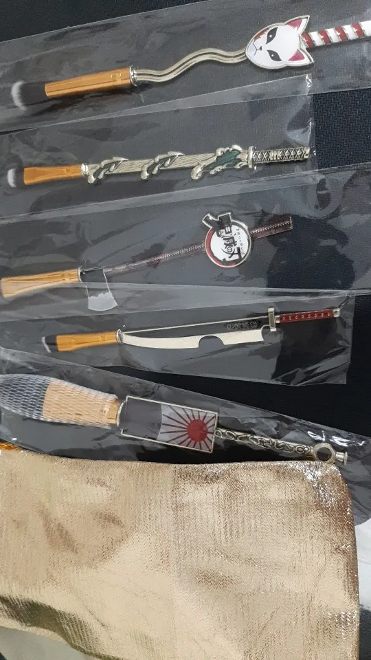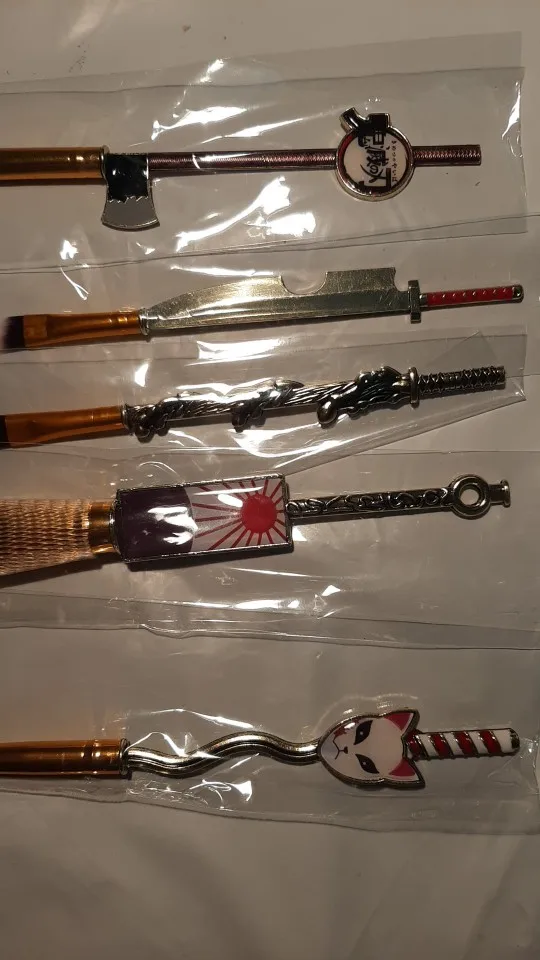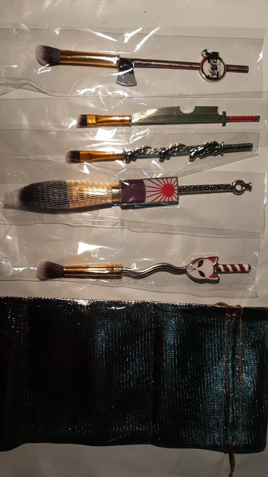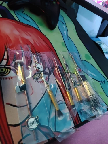 5 unids/set demonio asesino Kimetsu no Yaiba maquillaje cepillo Cosplay Anime japonés mujeres accesorios fantasma herramienta de maquillaje con bolsa accesorios de regalo