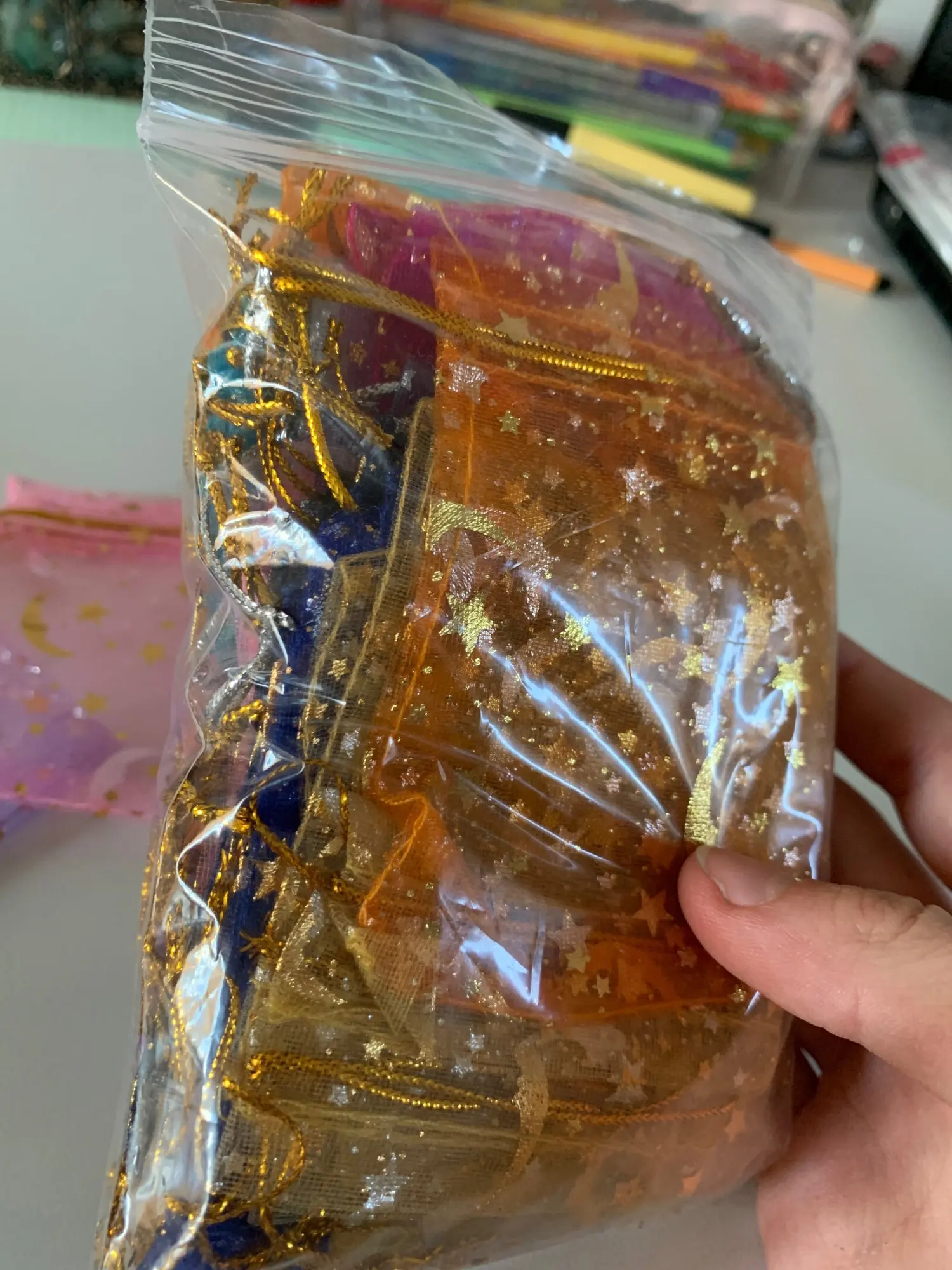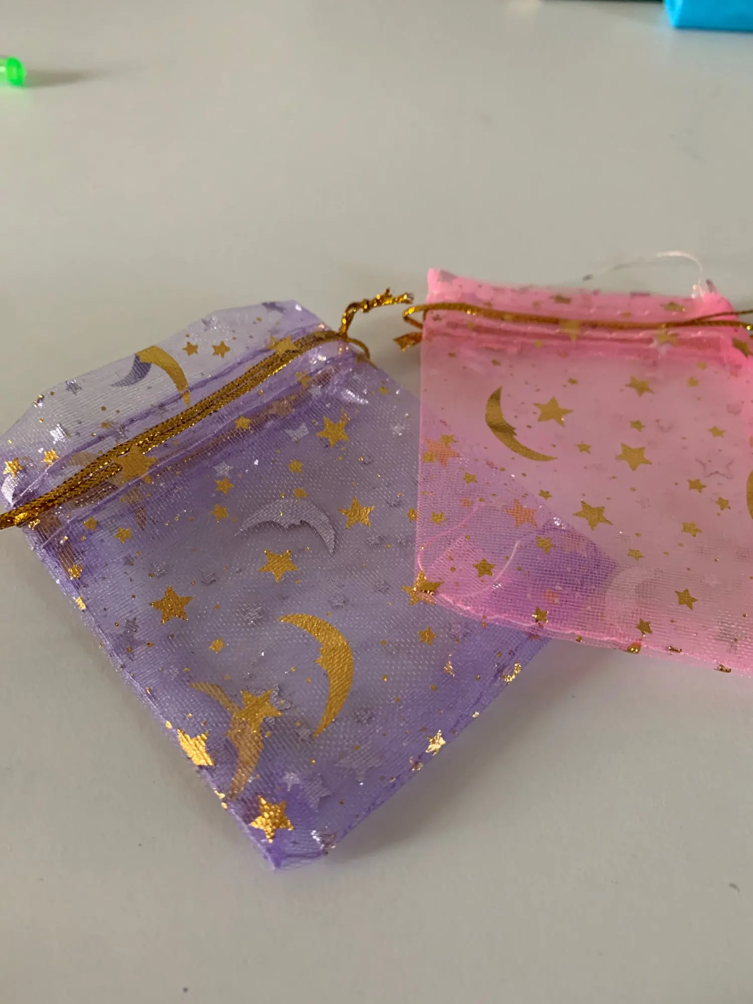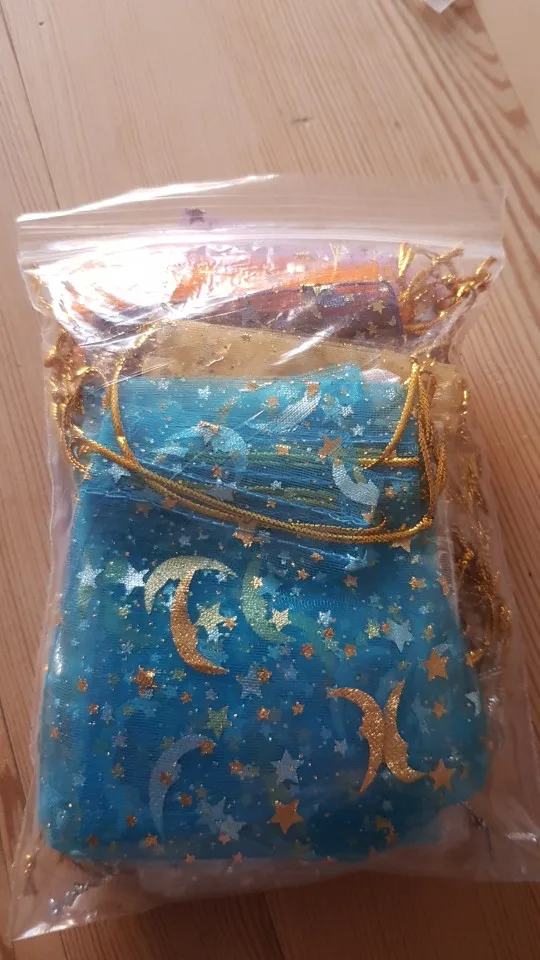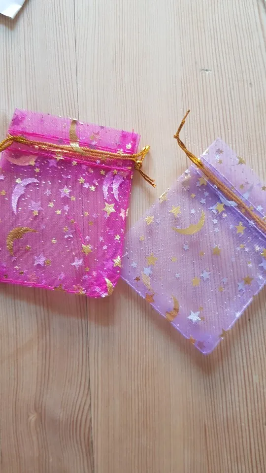 50 bolsas de Organza Moon Star de 7x9, 9x12cm,11x16cm, pequeñas bolsas de regalo con cordón para Navidad, bolsas de joyería y embalaje