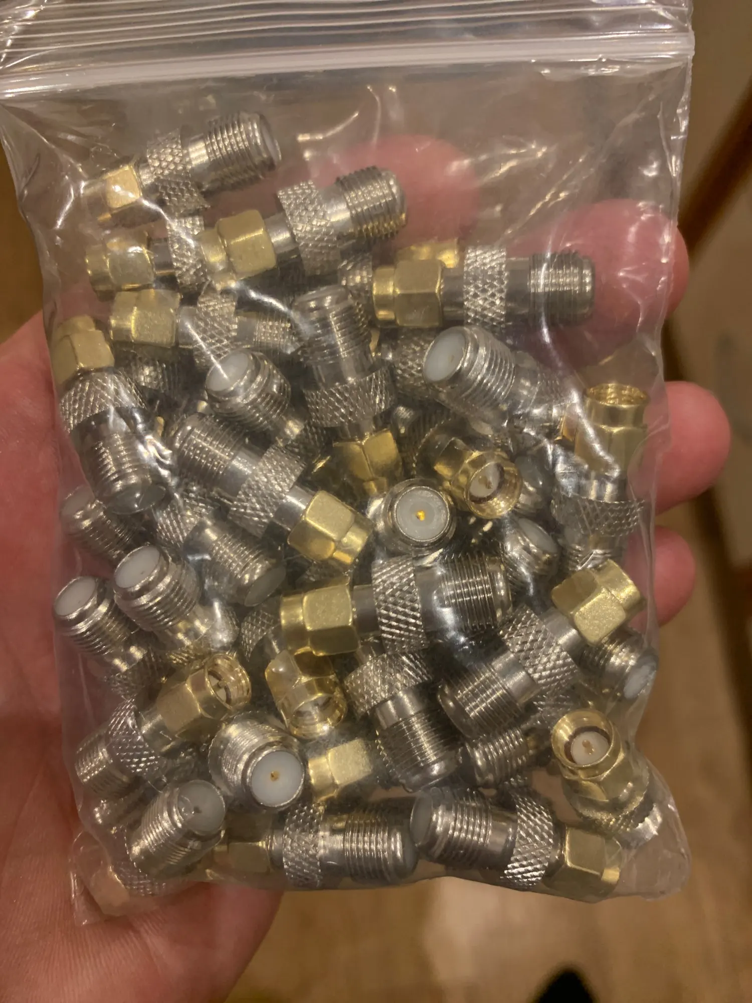 50 uds/100 Uds F mujer jack a SMA macho conector coaxial RF de cobre