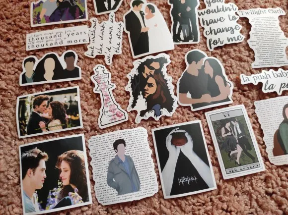50 Uds clásico película de la Saga Crepúsculo pegatinas portátil monopatín DIY maleta guitarra impermeable coche fresco calcomanías etiqueta Juguetes