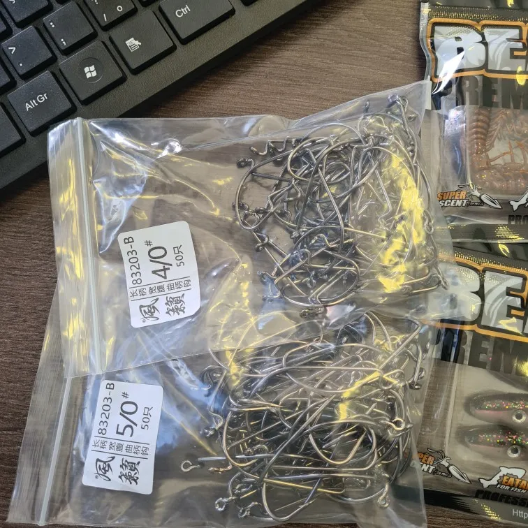 50 Uds. Por juego de pesca anzuelos de gusano blando anzuelos de acero de alto carbono anzuelos de pesca de gran candado anzuelos de señuelo suave anzuelos de cebo