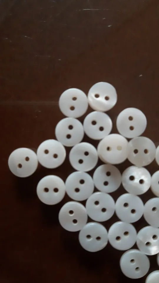 50 unids/lote 9mm/10mm/11mm/12mm/15mm/18mm/20mm/23mm natural de moda blanco cubierta con perla para madres botón 2 agujeros de botón de camisa