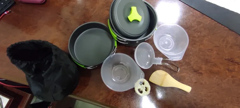 6 unids/set portátil de 2-3 personas utensilios de cocina tazón olla cuchara para acampar al aire libre senderismo mochila de viaje de vajilla accesorios para pícnic