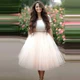 7 capas Midi falda de tul para niñas faldas tutú de moda mujer sólido encaje vestido de fiesta enaguas Lolita faldas saia jupe