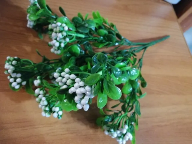 7 Tenedor de agua hierba de plástico de eucalipto plantas artificiales hierba verde planta de flores de plástico boda decoración del hogar decoraciones de mesa