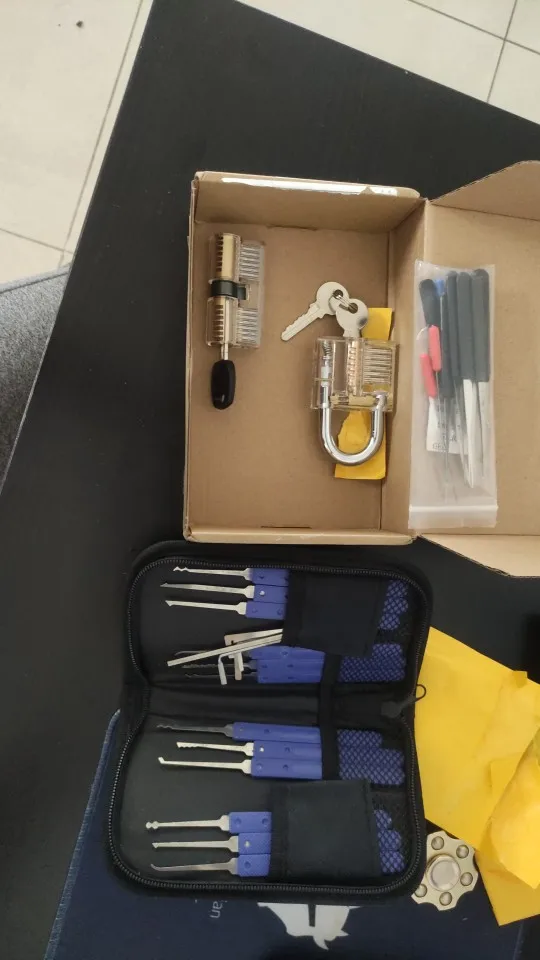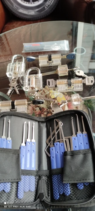 7 Uds transparente práctica cerraduras con 17 Uds abrir conjunto de 12 Uds roto clave Extractor recoger herramienta cerrajero profesional Kit de suministro