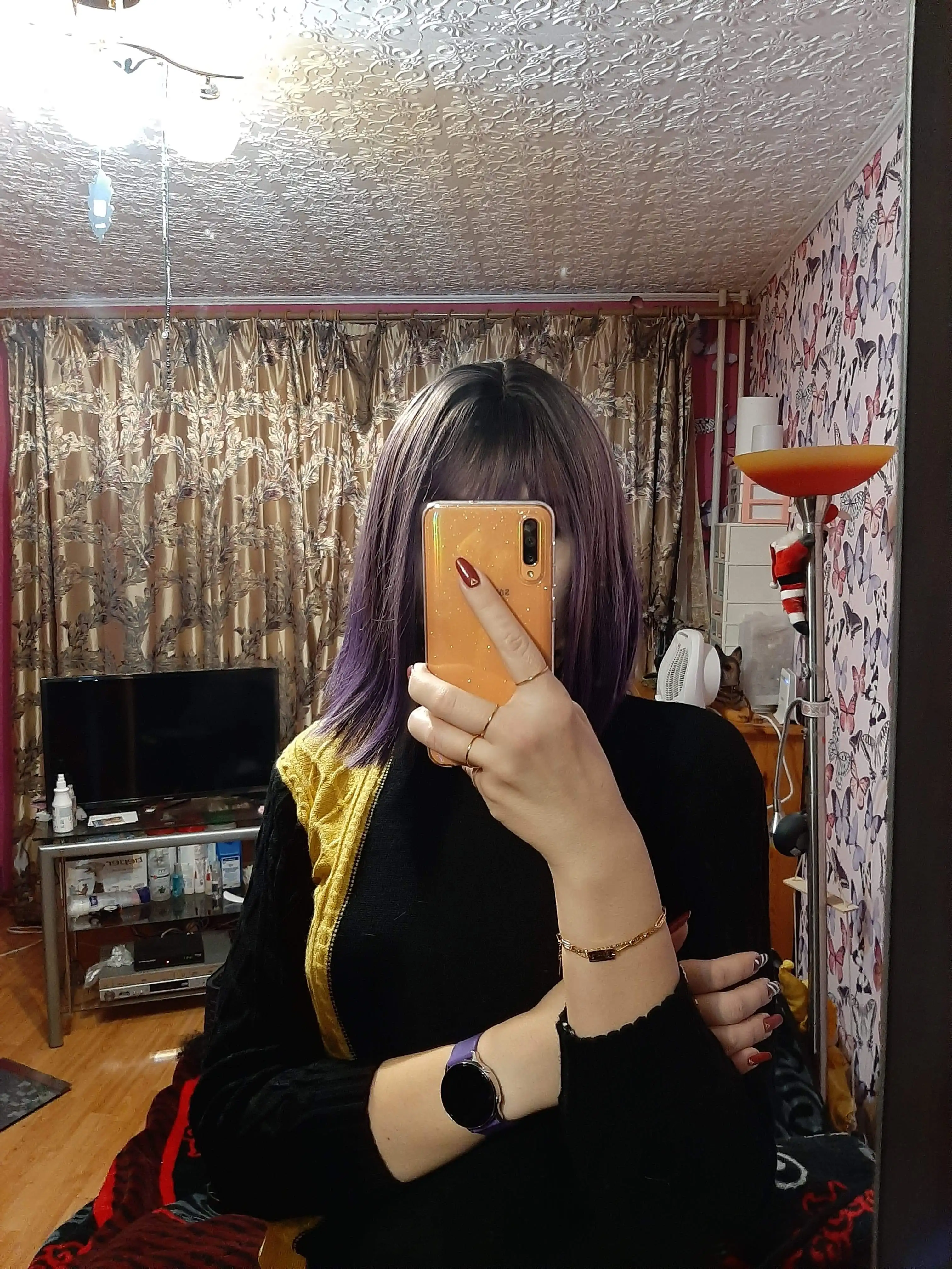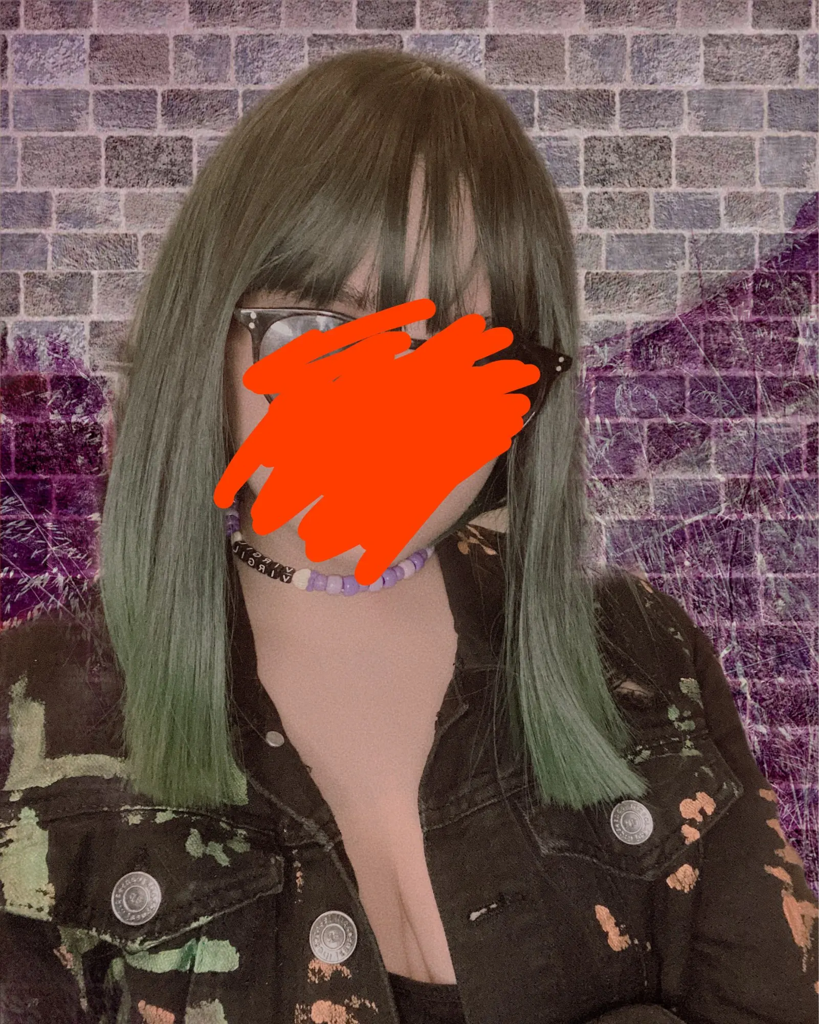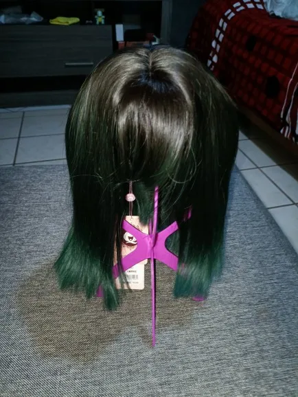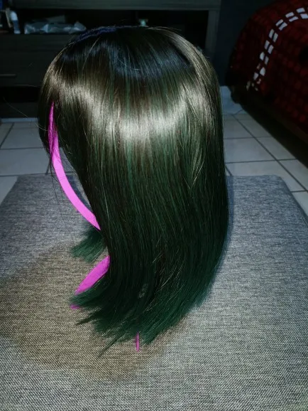 7JHH-peluca de cabello sintético para niña, cabellera artificial lisa de 18 pulgadas, color morado y verde, Seda de alta temperatura de moda, gran oferta, para uso diario